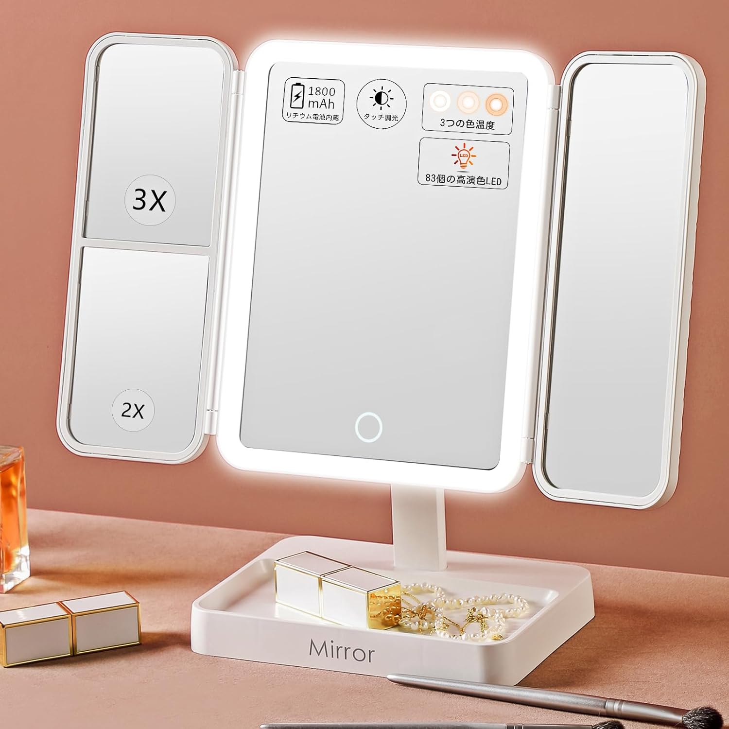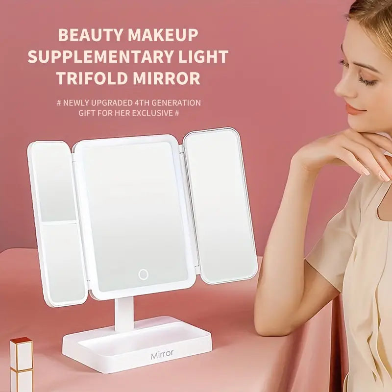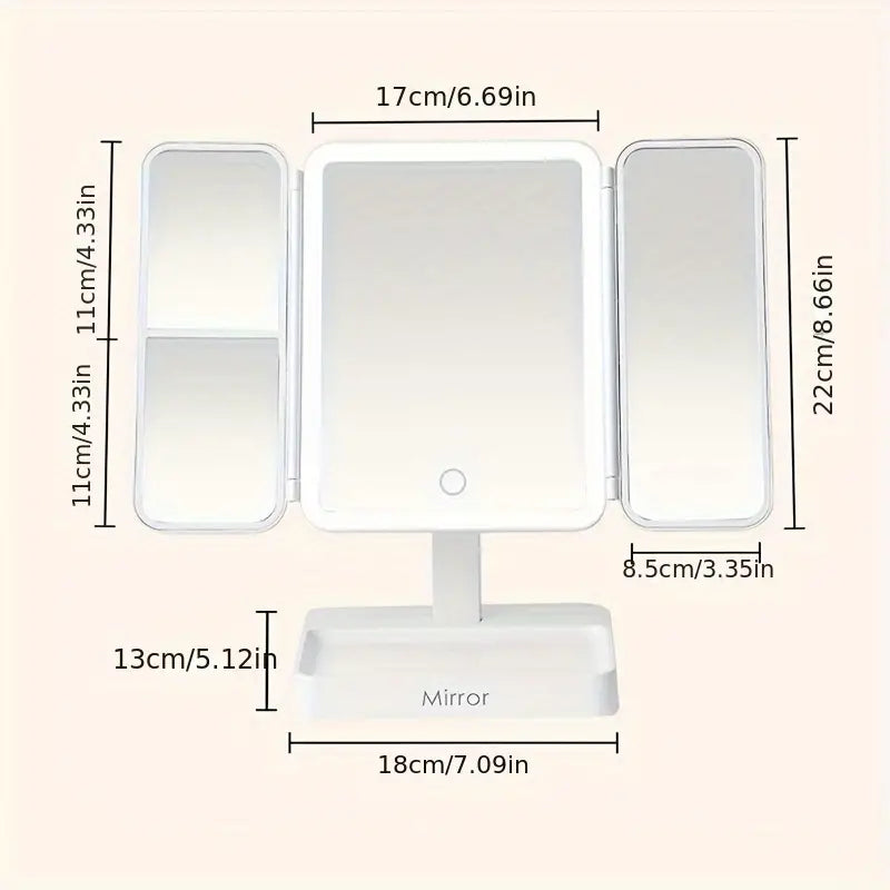 مرآة مكياج LED ثلاثية الطي مع 3 ألوان ضوء