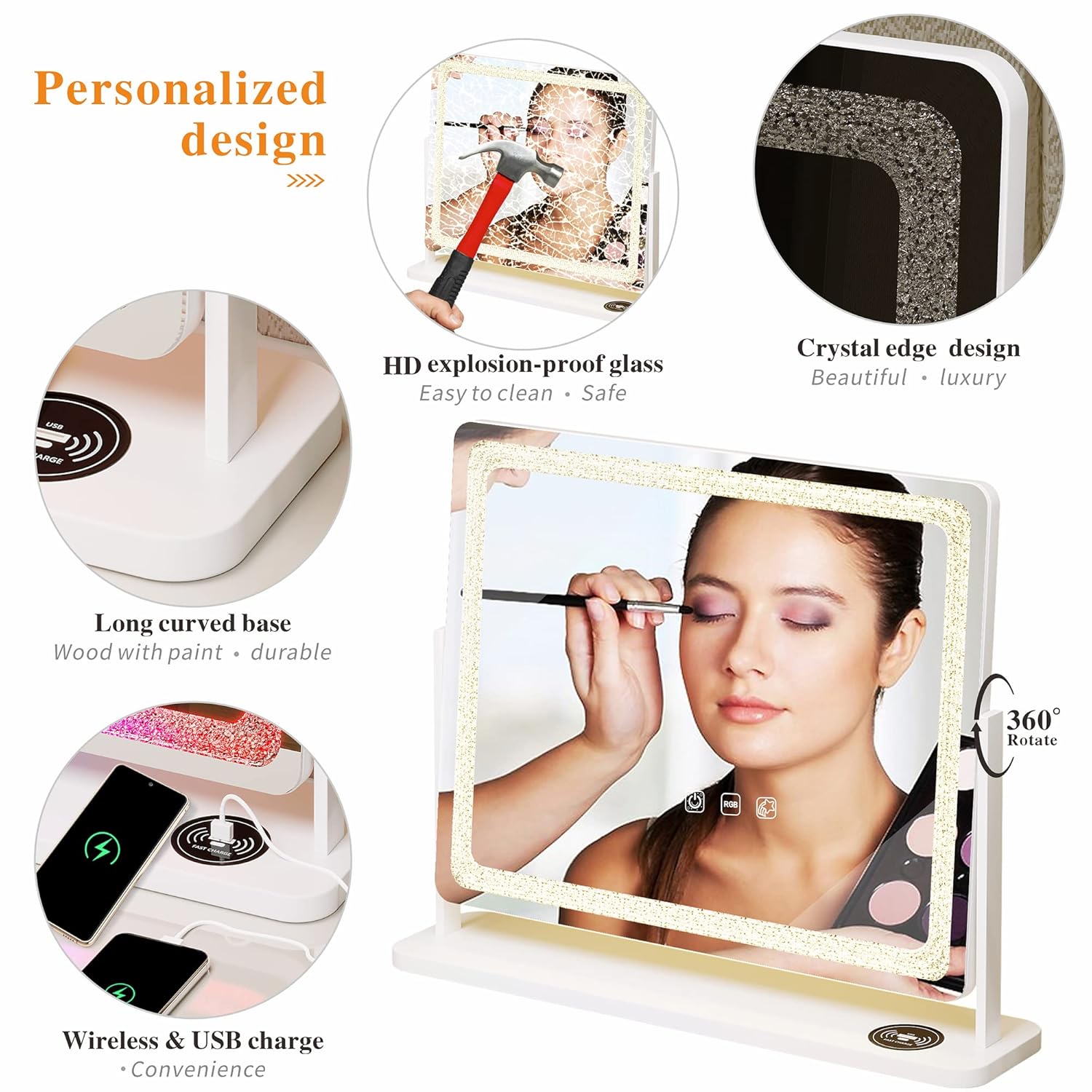 🌸[محطة شحن USB + لاسلكية] تحتوي على مرآة على مخطط شحن USB وType + وظيفة شحن. أثناء الوضع، لا يمكن أن تؤثر بشكل كبير على طاقة هاتفك المحمول، لشحن هاتفك المحمول في أي وقت.