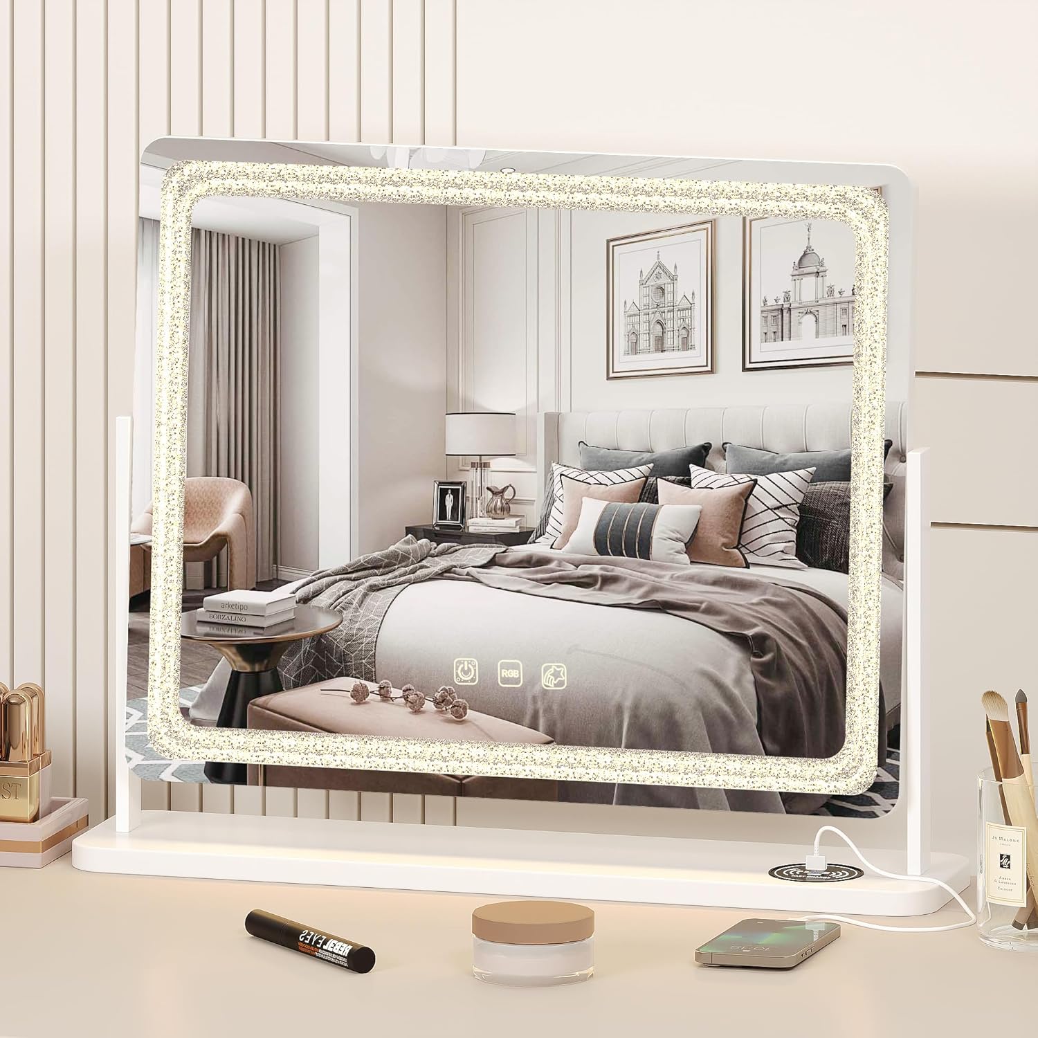 مرآة مكياج LED RGB مع 7 أوضاع قابلة للتعتيم