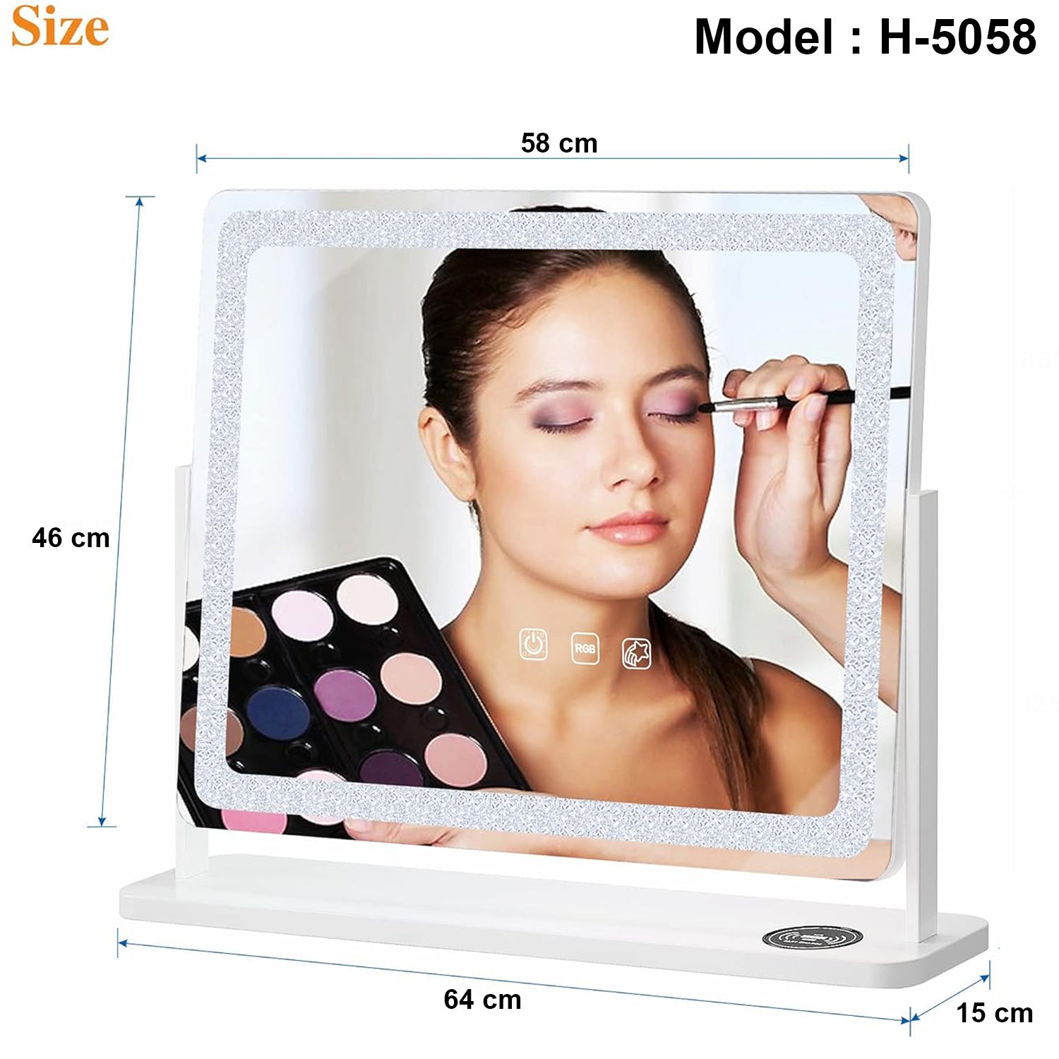 زينة مرآة قابلة للتعديل مع أضواء، مرآة مكياج LED RGB مقاس 58 سم × 45.5 سم، مرآة زينة مع 7 أجهزة للتعتيم