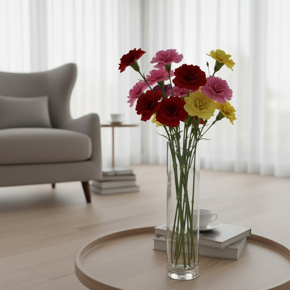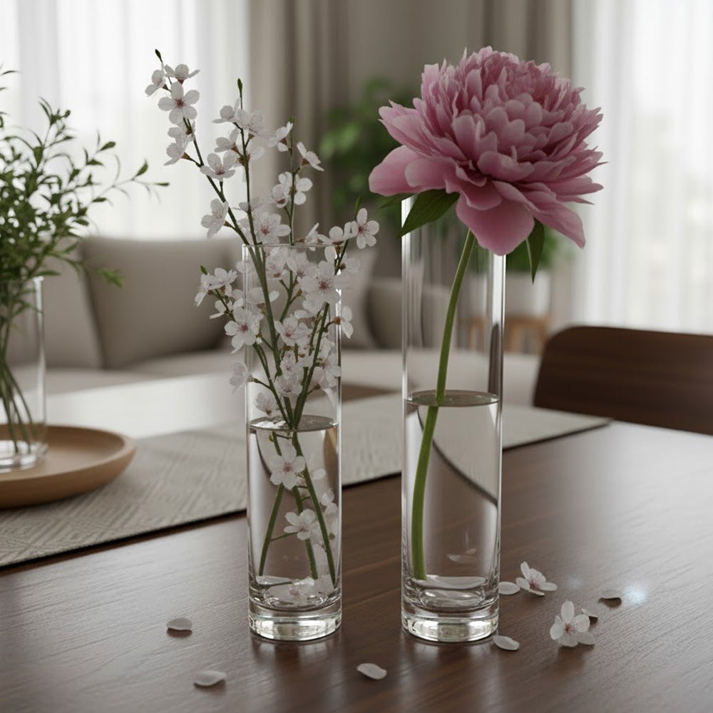 أضف لمسةً من الأناقة إلى منزلك مع هذه المزهرية الزجاجية الشفافة الطويلة، والمتوفرة بحجمين ليناسب أي تنسيق. يبلغ ارتفاع المزهرية 20.1 سم وقطرها 5 سم، وهي مثالية للزهور الرقيقة طويلة السيقان، بينما توفر النسخة الأطول قليلاً 25.1 سم مساحةً أكبر للباقات والتنسيقات الأكبر حجمًا. تتميز المزهريتان بتصميم أنيق وبسيط يُضفي جمالًا على أزهارك، مما يجعلها الإضافة المثالية لطاولة طعامك أو عتبة نافذتك أو مدخل منزلك. مصنوعة من زجاج عالي الجودة، تُعد هذه المزهريات مثالية للزهور الطبيعية والاصطناعية، مما يضفي لمسةً راقية على أي منزل أو مكتب.