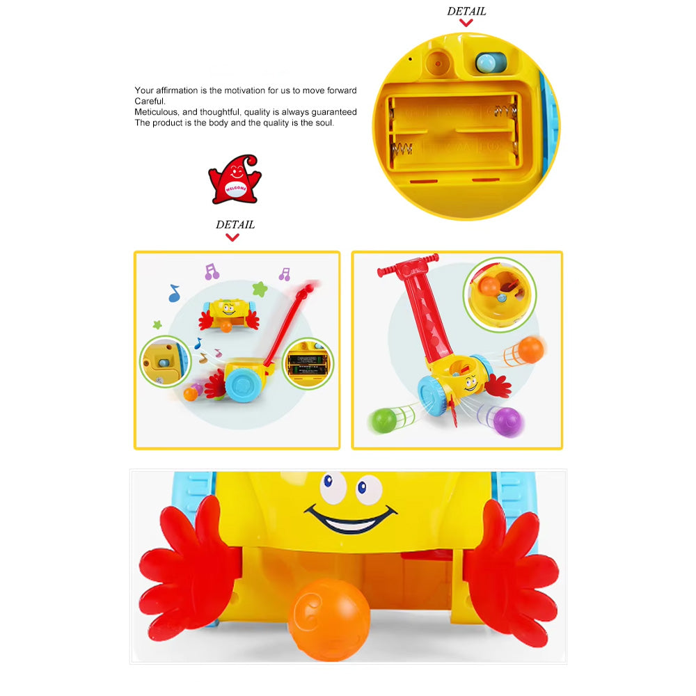 🌈 لعبة فرقعة الكرة التفاعلية - عندما يدفع طفلك المشاية، تفرقع الكرات الملونة وترتد، مما يضيف المتعة والتحفيز.