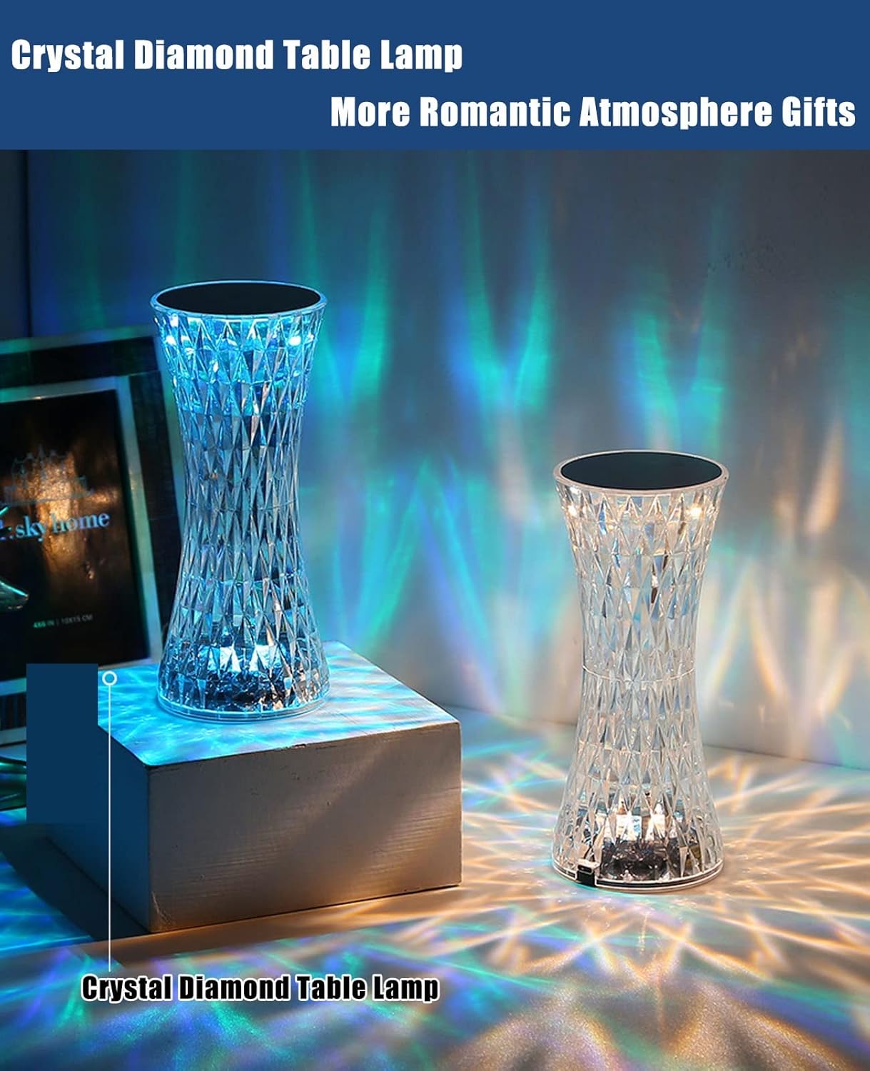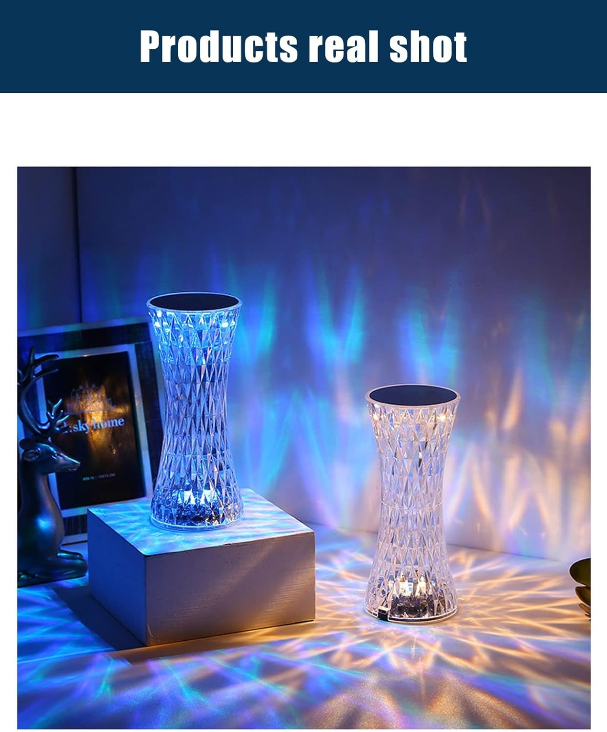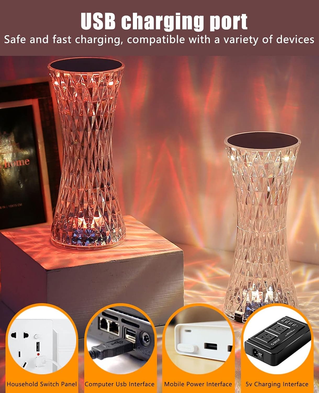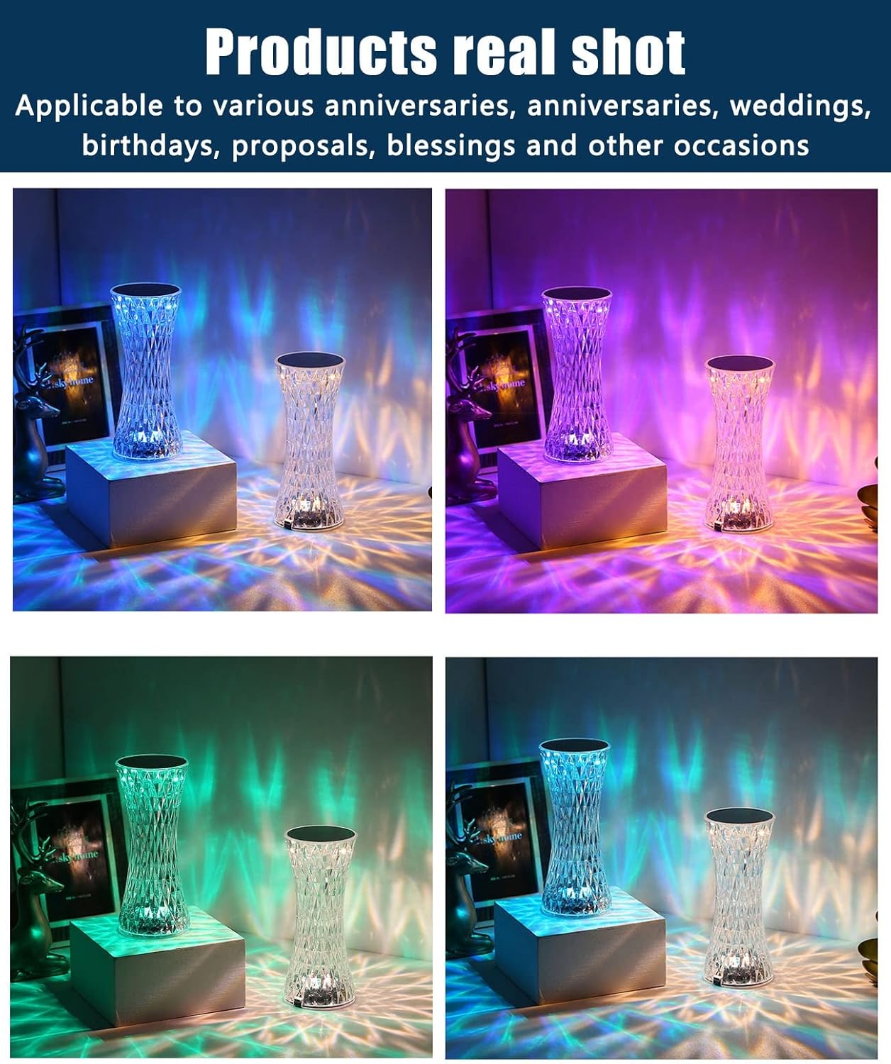 مصباح طاولة كريستال، 16 ضوء كريستالي RGB، مصباح لمس بـ 6 مستويات لضبط السطوع، مصباح طاولة قابل لإعادة الشحن مع منفذ شحن USB، مصباح طاولة ماسي لغرفة المعيشة والمنزل والمكتب وعيد الحب