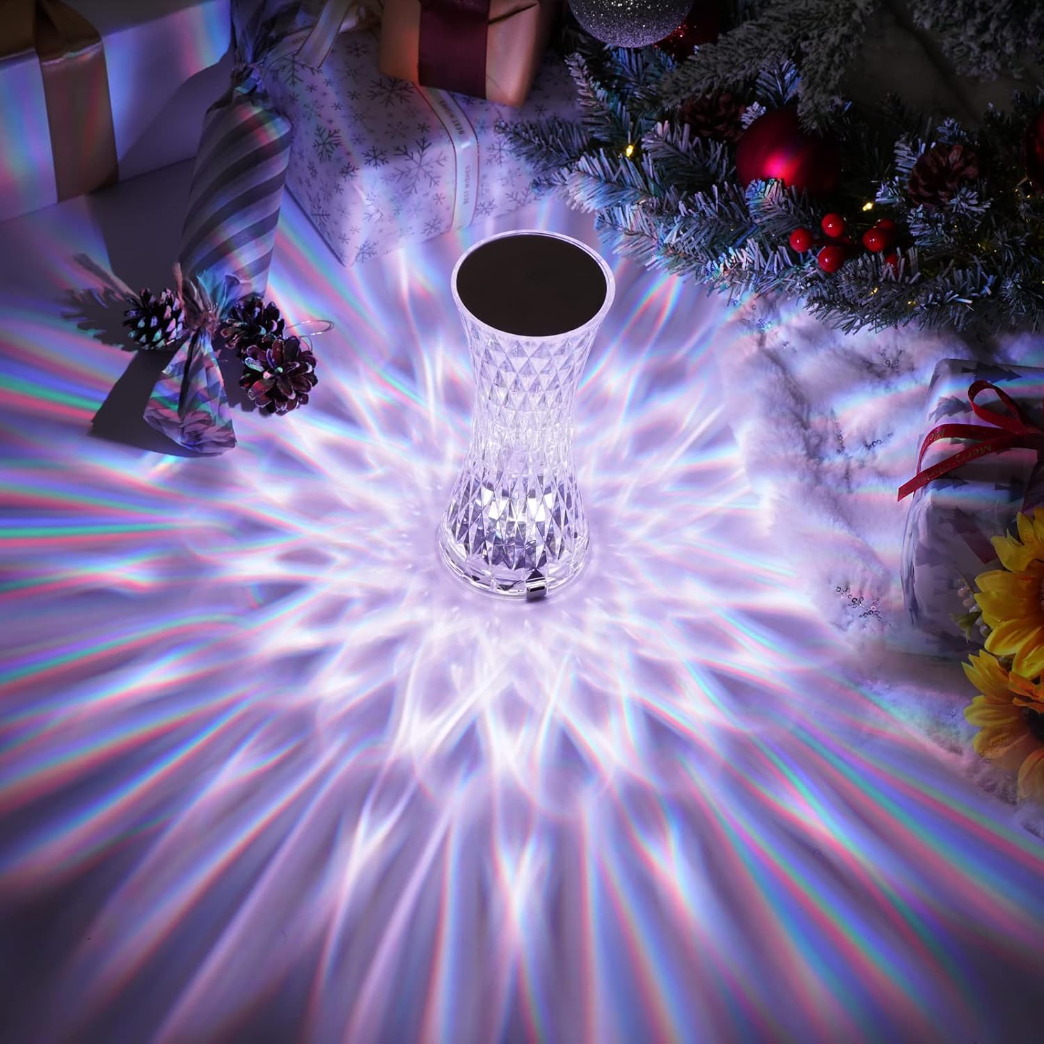 【هدية رومانسية】عندما تضيء مصباح الطاولة الكريستالي، فإنه ينبعث منه شعاع جميل على شكل زهرة. هدية مثالية للأطفال والعائلة والأصدقاء. يمكن استخدامه أيضًا في عيد الحب وعيد الميلاد والحفلات وحفلات الزفاف وتزيين الغرفة وعيد الشكر والكريسماس وما إلى ذلك.