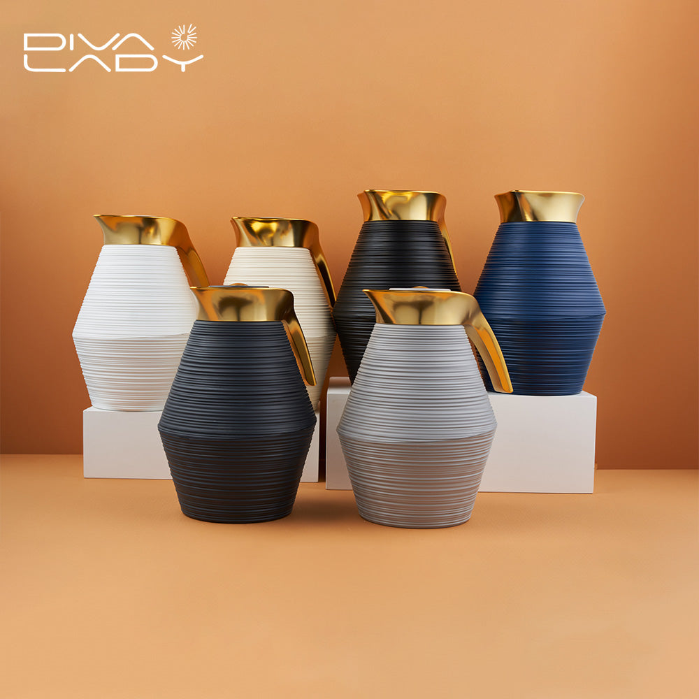 مطارة فاخرة للشاي والقهوة تضفي على طاولة الضيافة الخاصة بك لمساتٍ من الأناقة والرتابة. تأتي بتصميم مميز يحافظ علي الحرارة لمدة طويلة تدوم من 6 الي 8 ساعات لتستمع بمشروباتك الساخنة في أي وقت