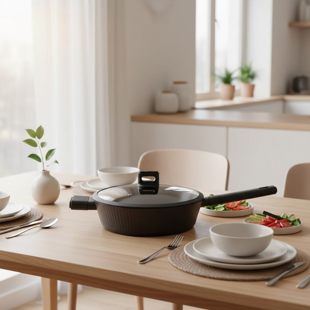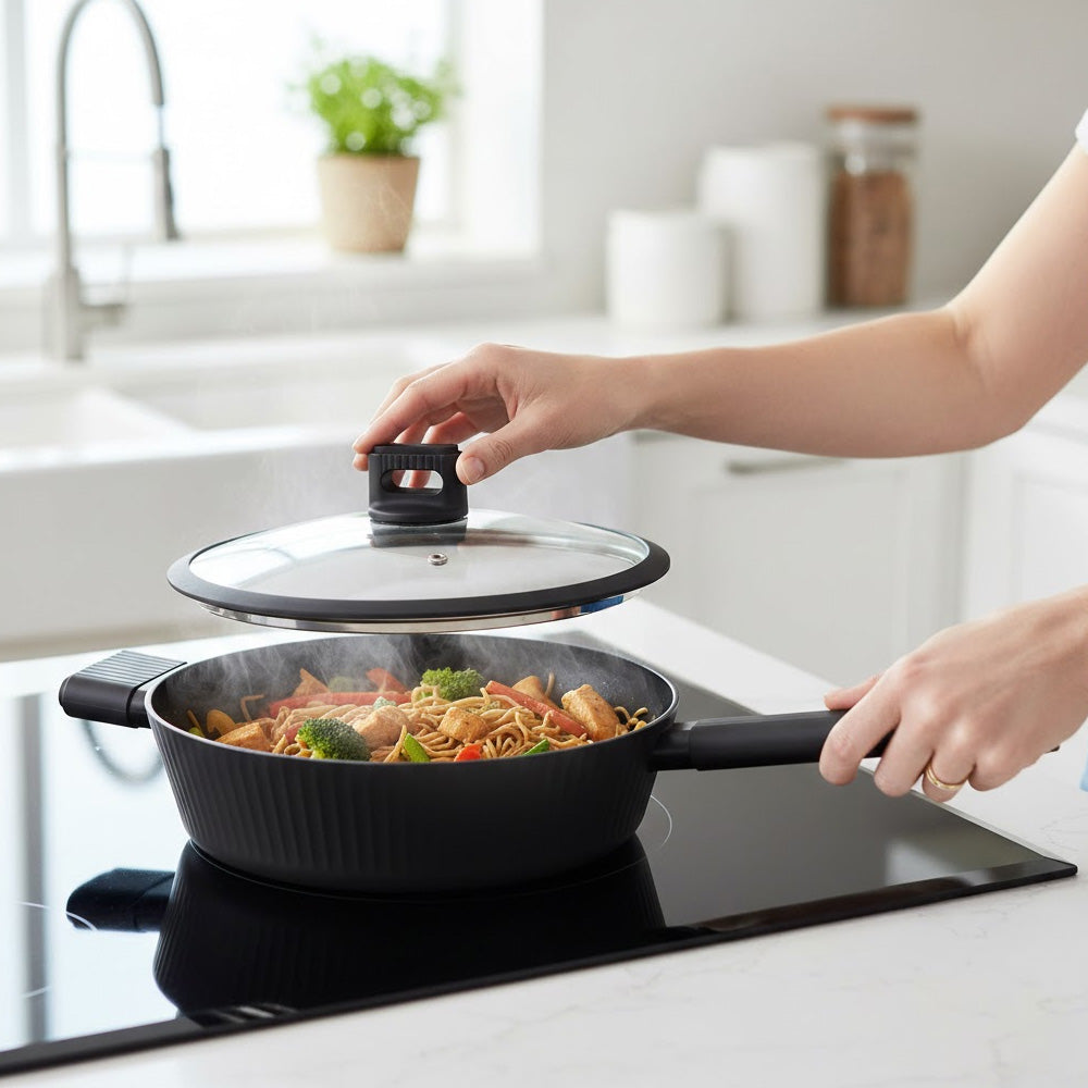 مثالية للاستخدام اليومي، تجمع هذه المقلاة بين التصميم العصري والأداء العملي لتجعل الطهي أسرع وأسهل وأكثر متعة.