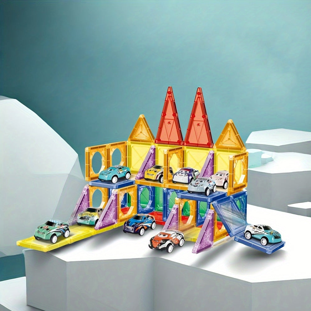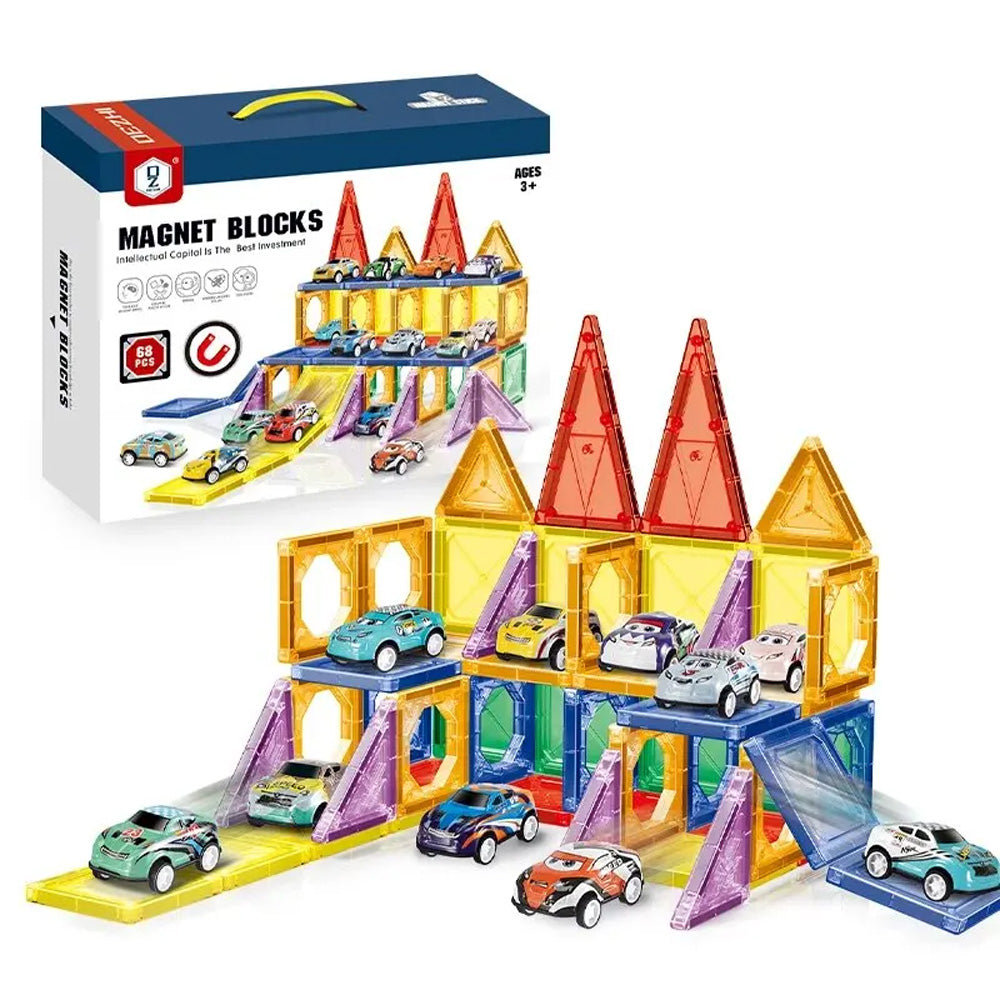 يتكون المكعب المغناطيسي من 78/68 قطعة، ويضم 20 سيارة، حيث يمكنك بناء هياكل متنوعة، واللعب بالسيارات، حيث تتوفر أشكال وألوان مختلفة. إنه مفيد جدًا لتنمية مهارات الطفل الحركية والبصرية، ويعزز نموه العقلي وإدراكه الصحيح للألوان والأشكال.