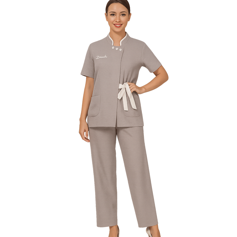 هذا الزي يعطي انطباعًا مهنيًا وهادئًا، ومناسب لبيئات مثل السبا، العيادات، الضيافة أو الصالونات.
