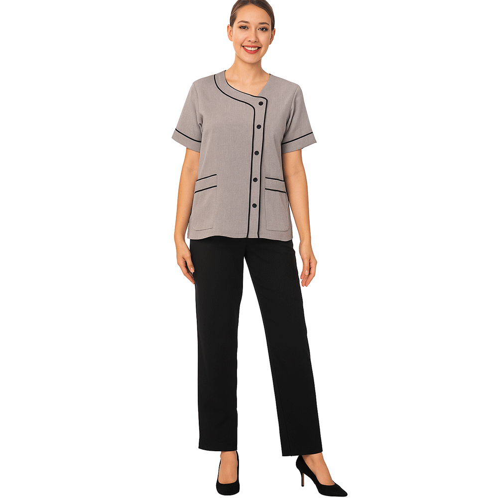 هذا النوع من اليونيفورم يناسب مجالات مثل الضيافة، الرعاية الصحية، أو الاستقبال، لأنه يجمع بين الراحة والمظهر المنسق.