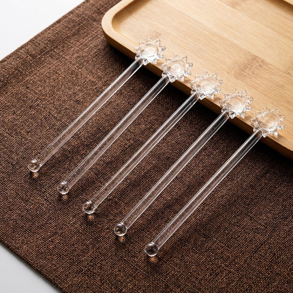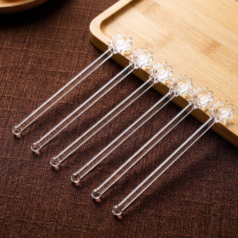 أضيفي لمسة من الأناقة والفخامة إلى تقديم مشروباتك مع ملاعق التقليب الشفافة ذات رأس علي شكل شمس . مصنوعة من بلاستيك عالي الجودة، بتصميم أنيق وعملي يناسب جميع المناسبات.
