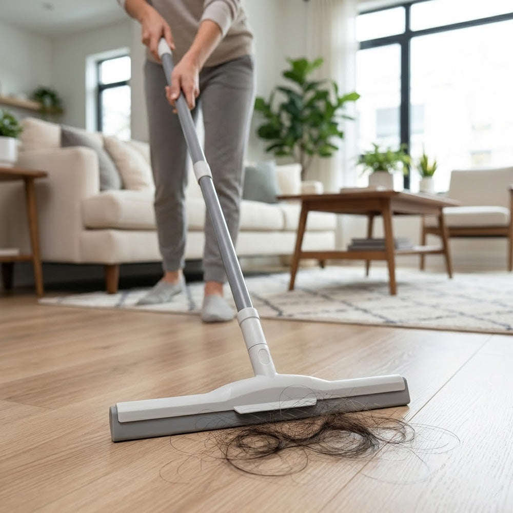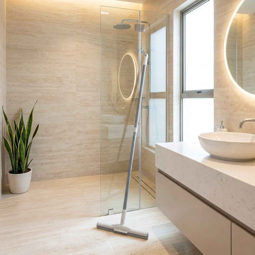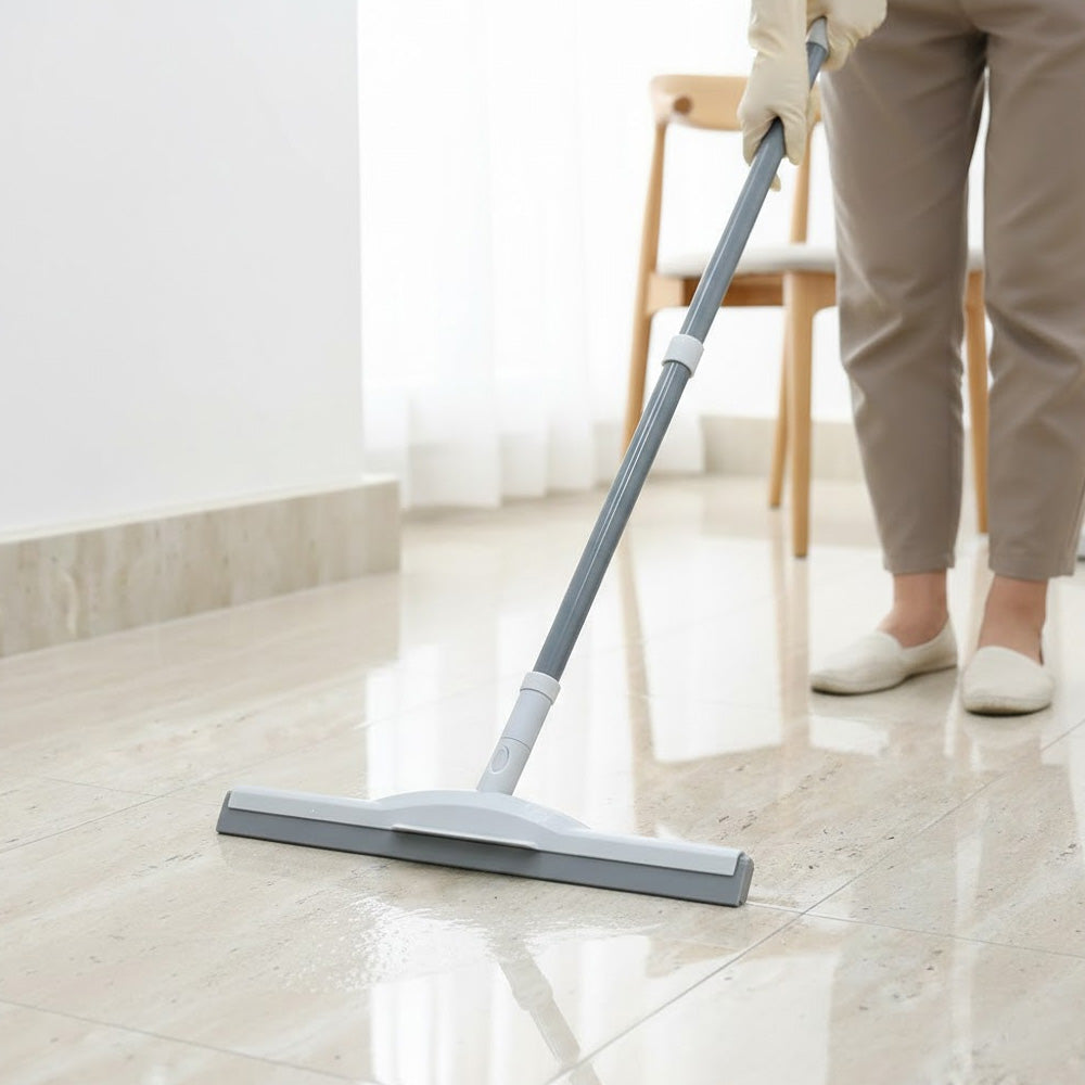 ممسحة الأرضيات الاحترافية ذات المقبض الطويل مصممة لتنظيف الأرضيات بكفاءة وسهولة. مزودة بشفرة مطاطية عالية الجودة، تزيل الماء والغبار والشوائب بفعالية دون ترك أي آثار.