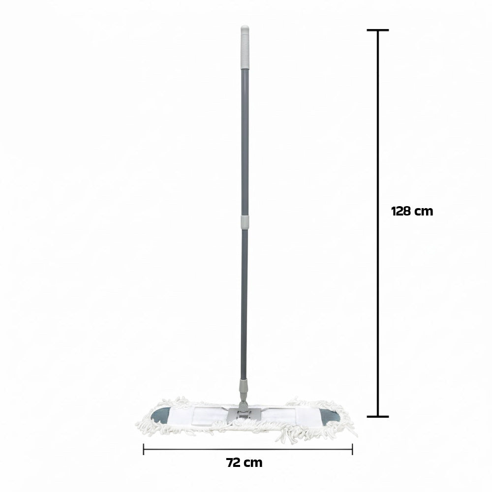 اجعل تنظيف الأرضيات أسرع وأسهل مع ممسحة الأرضيات المصنوعة من الألياف الدقيقة العريضة للغاية، والمصممة لتغطية فعّالة واستخدام سلس. بفضل رأسها العريض (72 سم)، تنظف مساحات واسعة بمسحات أقل، موفرةً الوقت والجهد. يوفر المقبض الطويل (128 سم) وصولاً مريحاً، مما يقلل من الانحناء والإجهاد أثناء التنظيف.