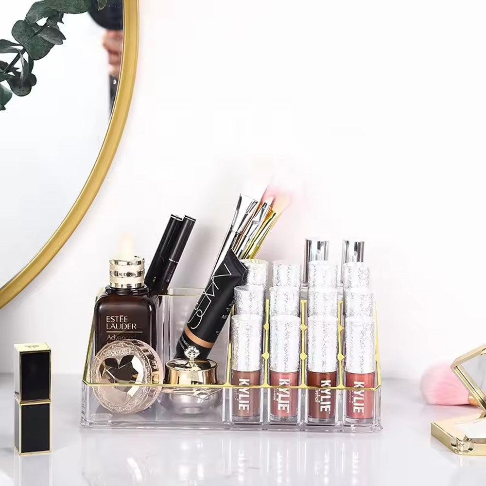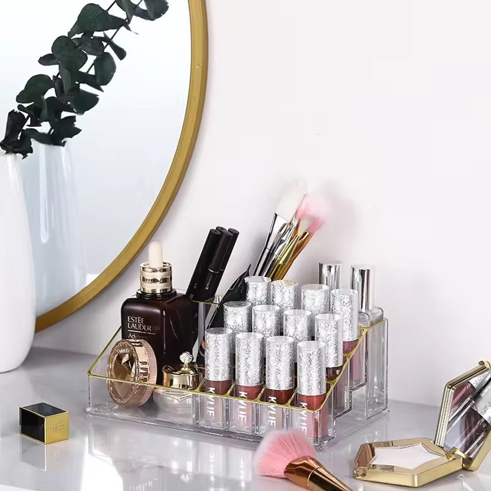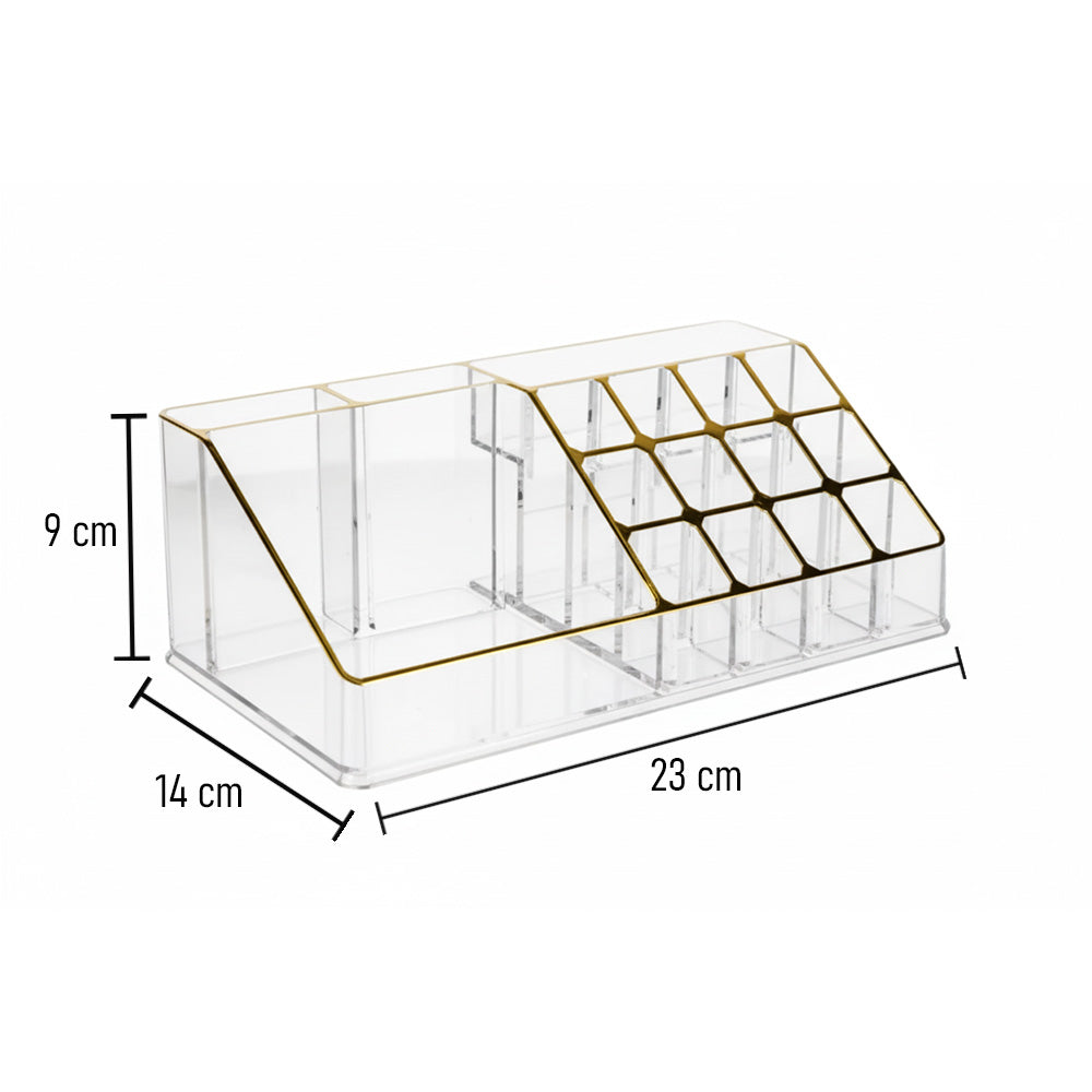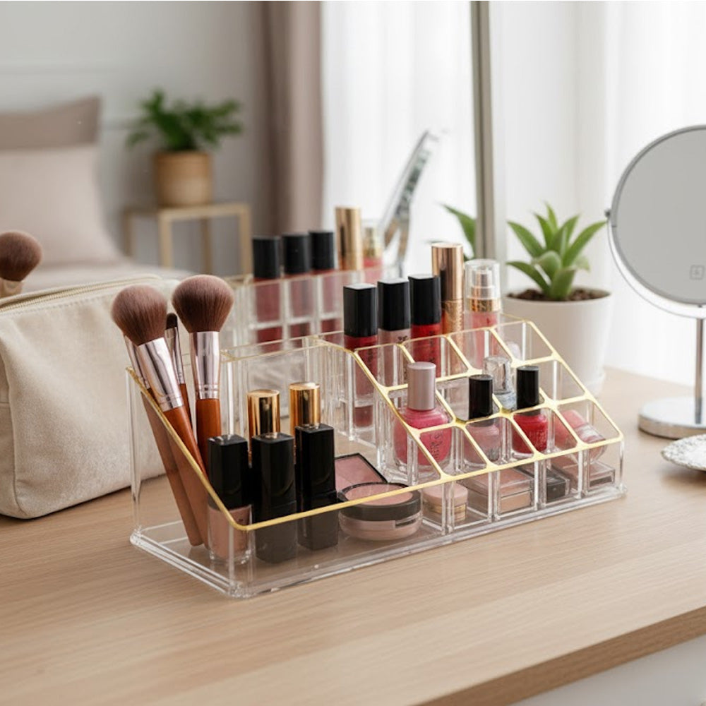 خزّني ونظّمي مستحضرات التجميل مع منظم مستحضرات التجميل الأنيق لدينا، والمكوّن من ١٦ جيبًا.