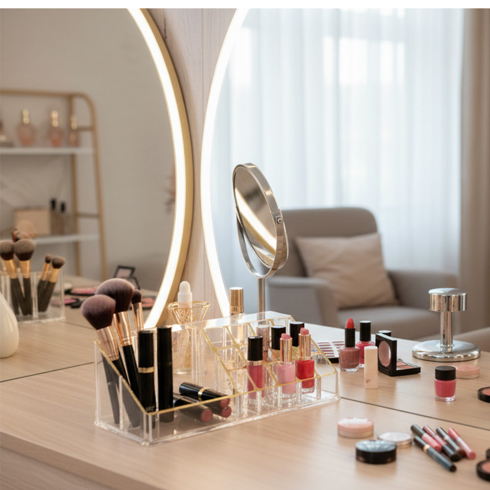مثالي لتخزين ظلال العيون، وكريم الأساس، ومنتجات العناية بالبشرة، وأحمر الشفاه، وملمع الشفاه، أو المجوهرات.
