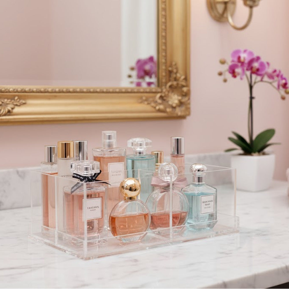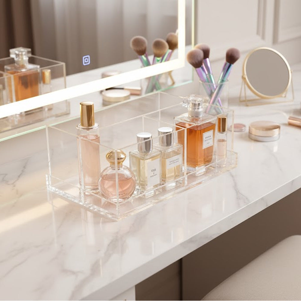 خزّني ونظّمي مستحضرات التجميل مع منظم مستحضرات التجميل الأنيق بأربعة أقسام قابلة للفصل.