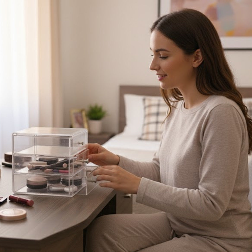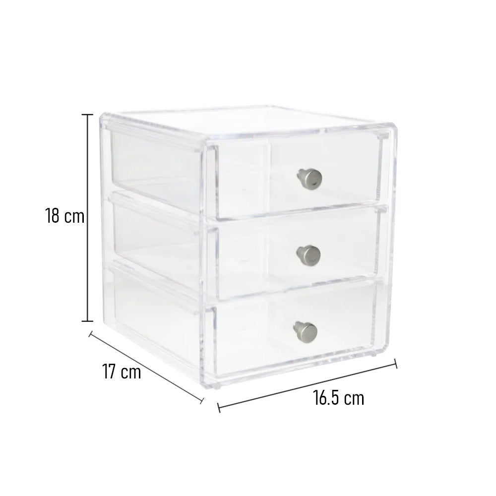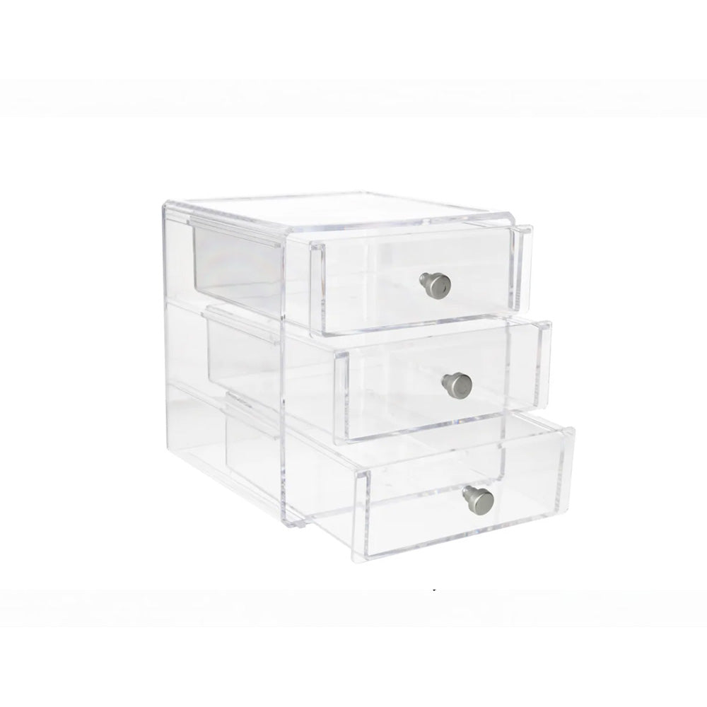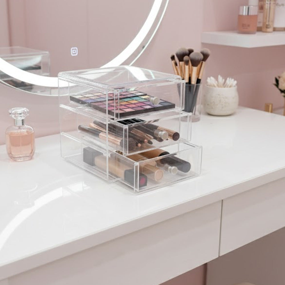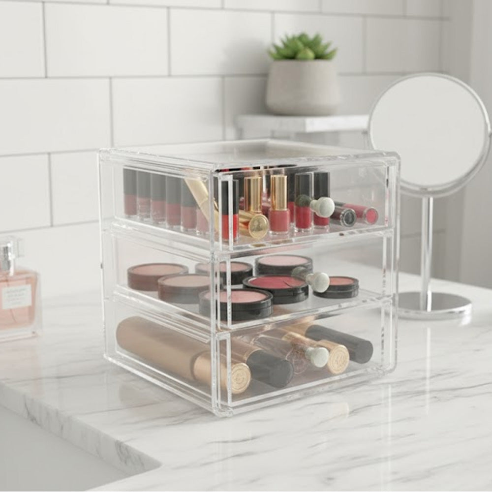 منظم مكياج أكريليك شفاف بثلاثة أدراج