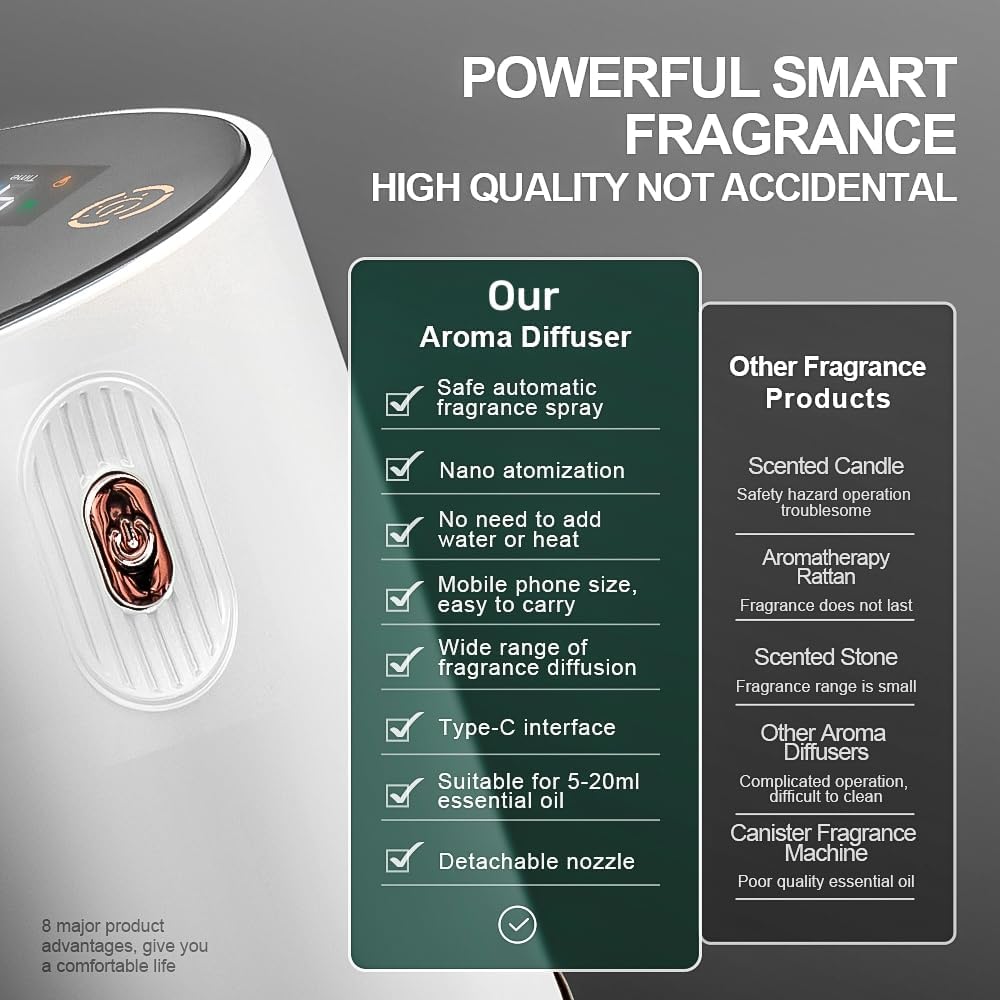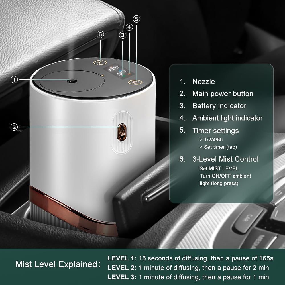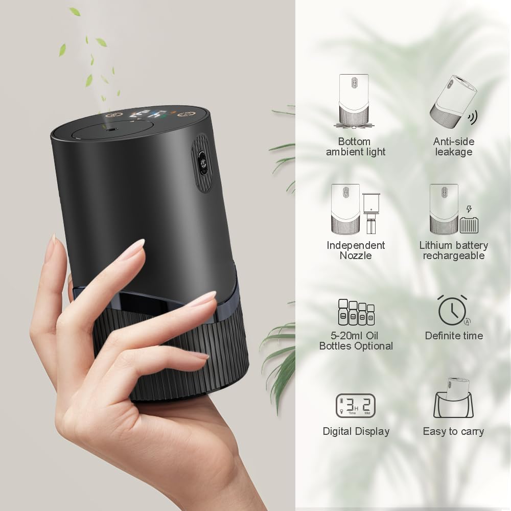 موزع هواء عطور بدون ماء - موزع رائحة مع مؤشر، جهاز تنفس هواء بارد 1/2/3 وضباب، مضاد للانسداد، إعداد مؤقت ووظيفة إيقاف تشغيل تلقائي