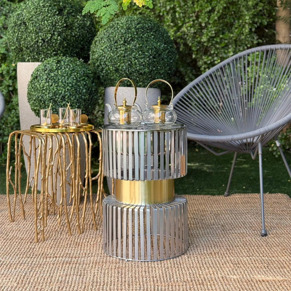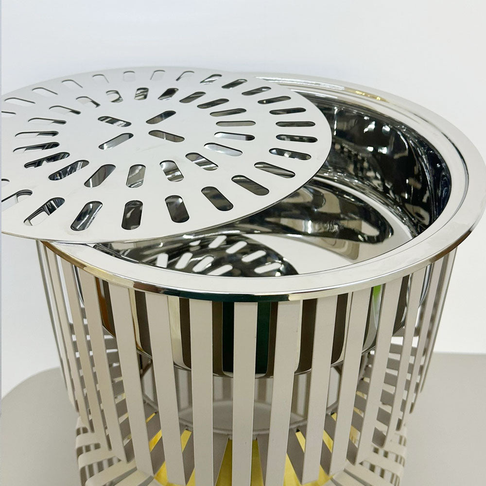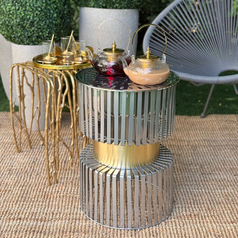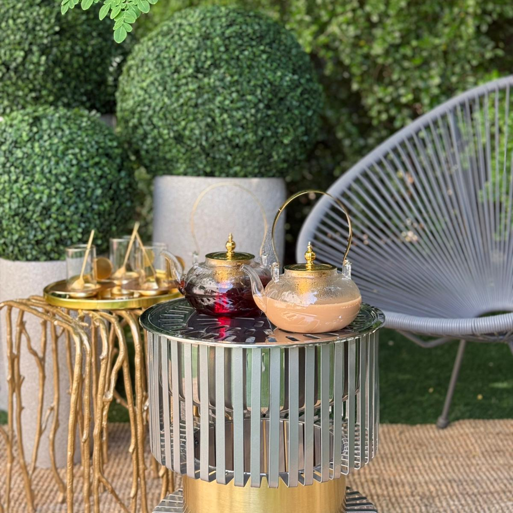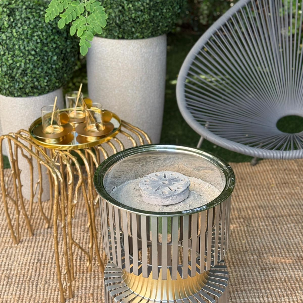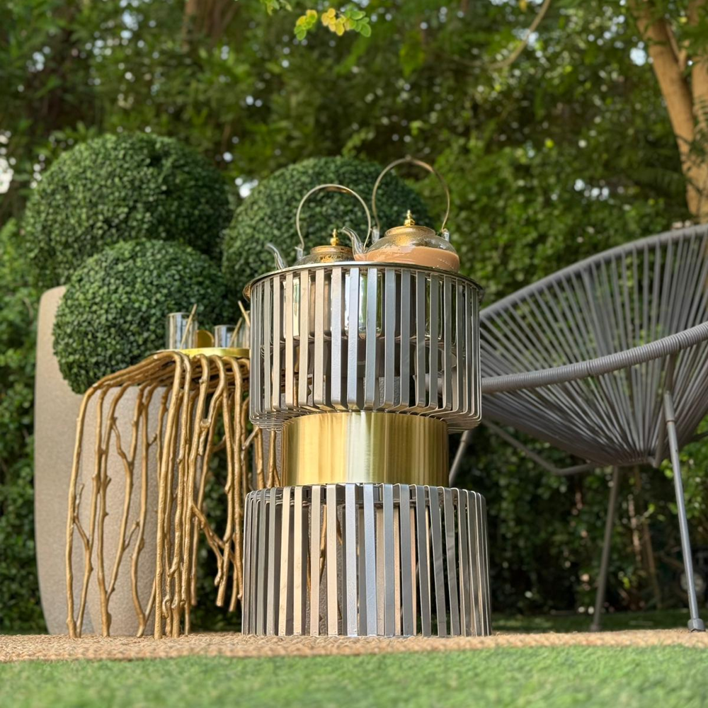 استمتع بتجربة شواء مميزة في الهواء الطلق أو داخل المنزل مع هذه الشواية المعدنية الفاخرة المصممة لتجمع بين الجمال والعملية.