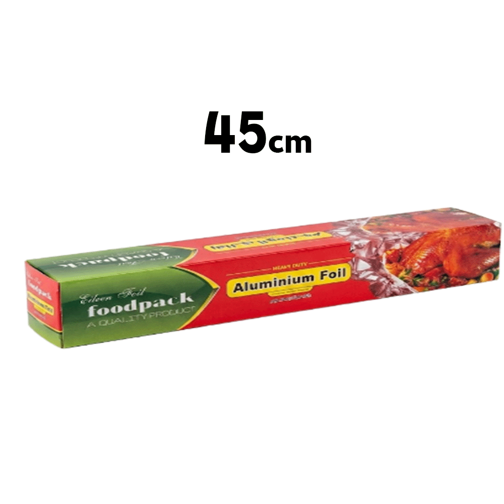 ورق ألومنيوم متوفر بعرض 45 سم وطول 30 سم ، غالبًا ما يحتوي الكرتون على 24 لفة، ويتوفر بتغليف في علبة ملونة أو كيس بلاستيكي.