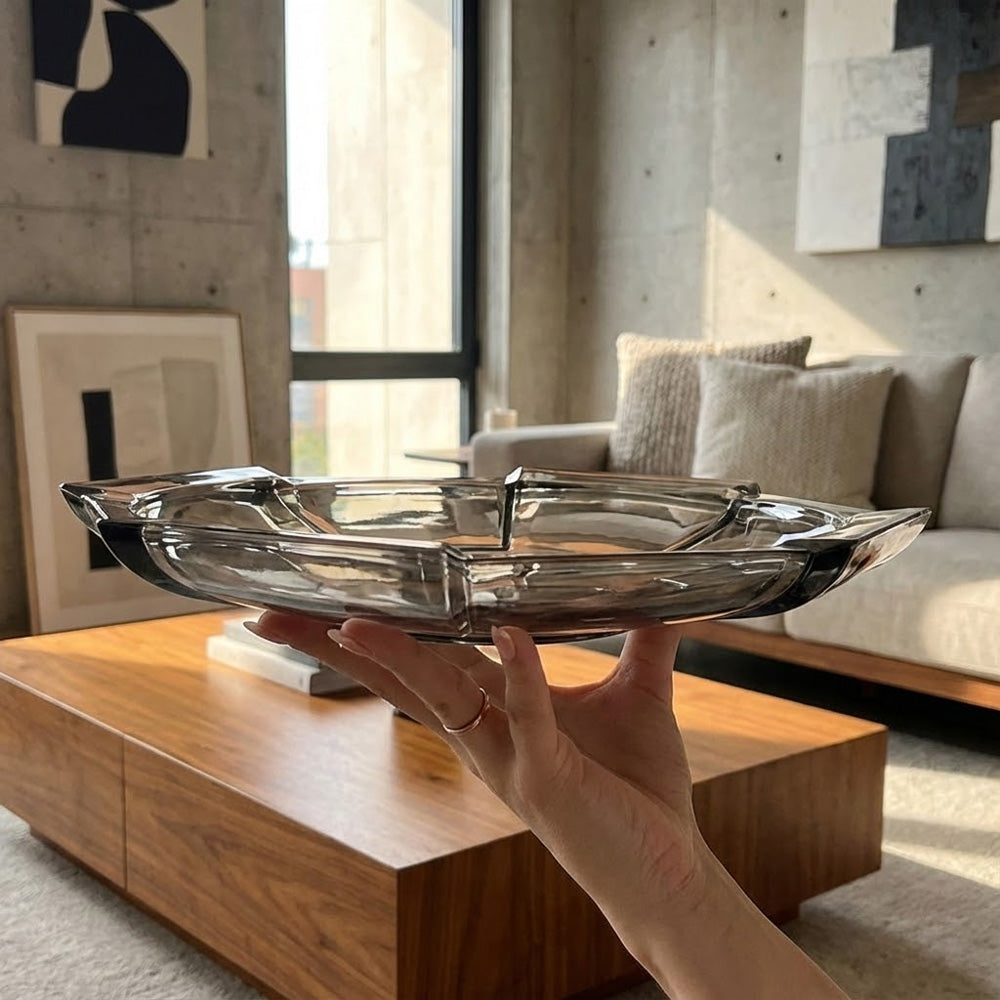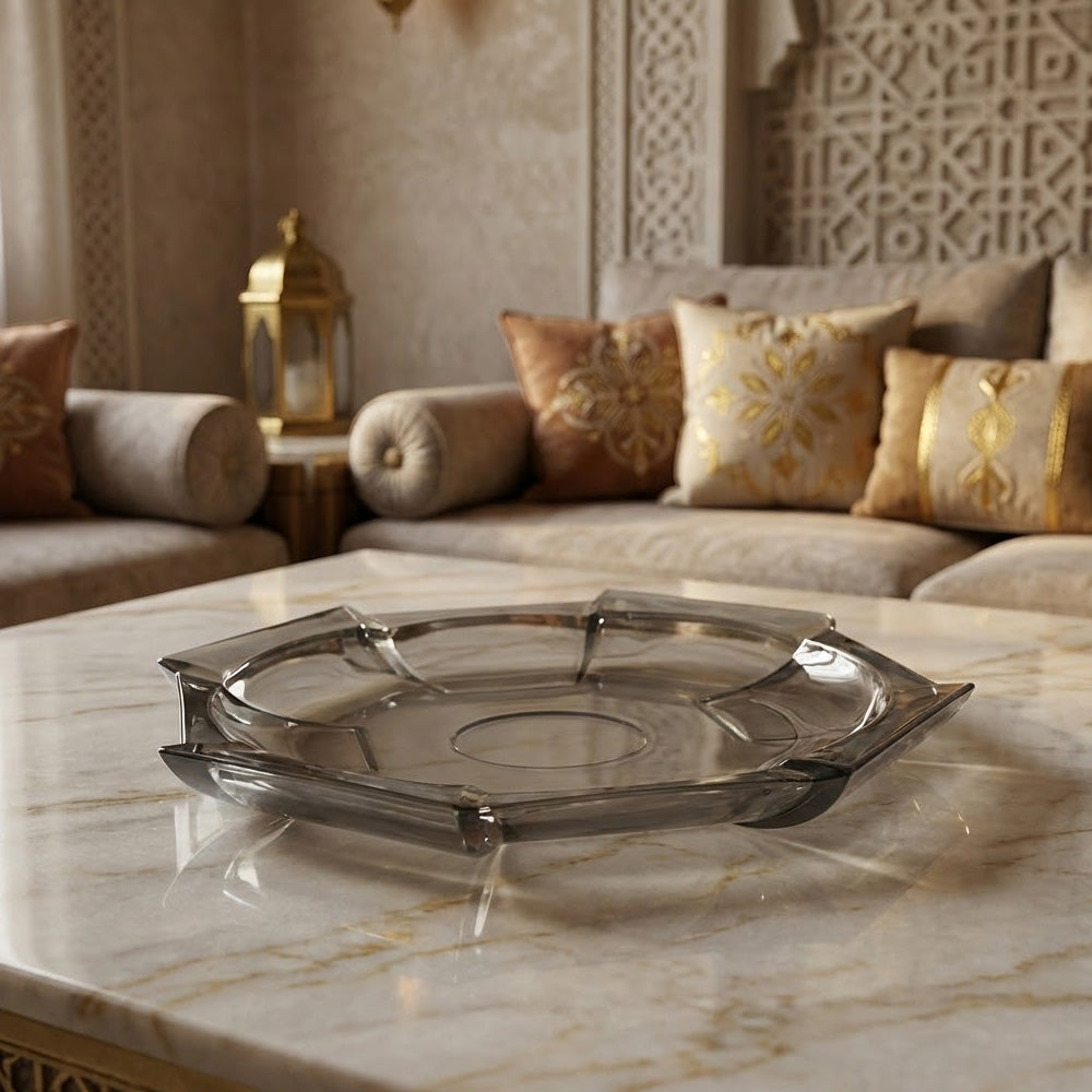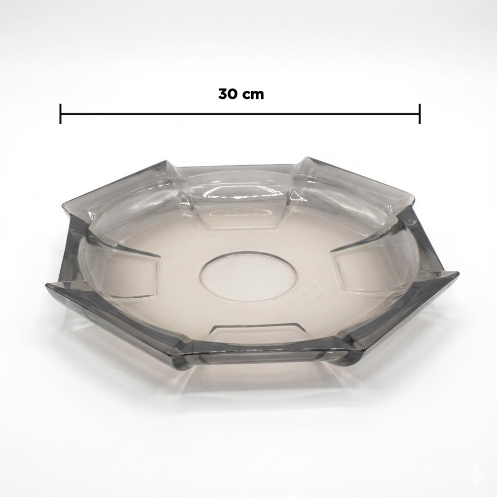 أضف لمسة من الأناقة العصرية إلى مائدتك مع وعاء الفاكهة الكريستالي السداسي (عرض 30 سم). يتميز هذا الوعاء بتصميم هندسي فريد ولمسة نهائية شفافة أنيقة بلون دخاني، مما يجعله مثاليًا لعرض الفواكه الطازجة وإضفاء لمسة جمالية على أي مطبخ أو غرفة طعام.