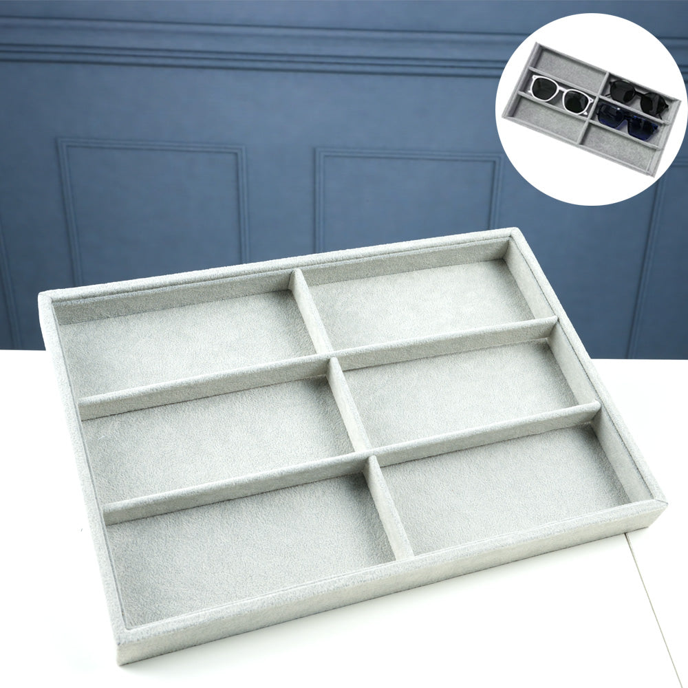 صينية تنظيم النظارات الشمسية، صندوق عرض نظارات مخملي بلون بيج ثلجي، حامل منظم للنظارات لدرج المكتب المنزلي أو المتجر أو عرض البيع