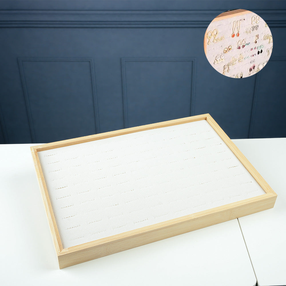 صينية عرض حلقات من الخشب والجلد الصناعي تحتوي على 100 رقم