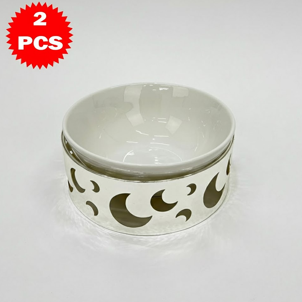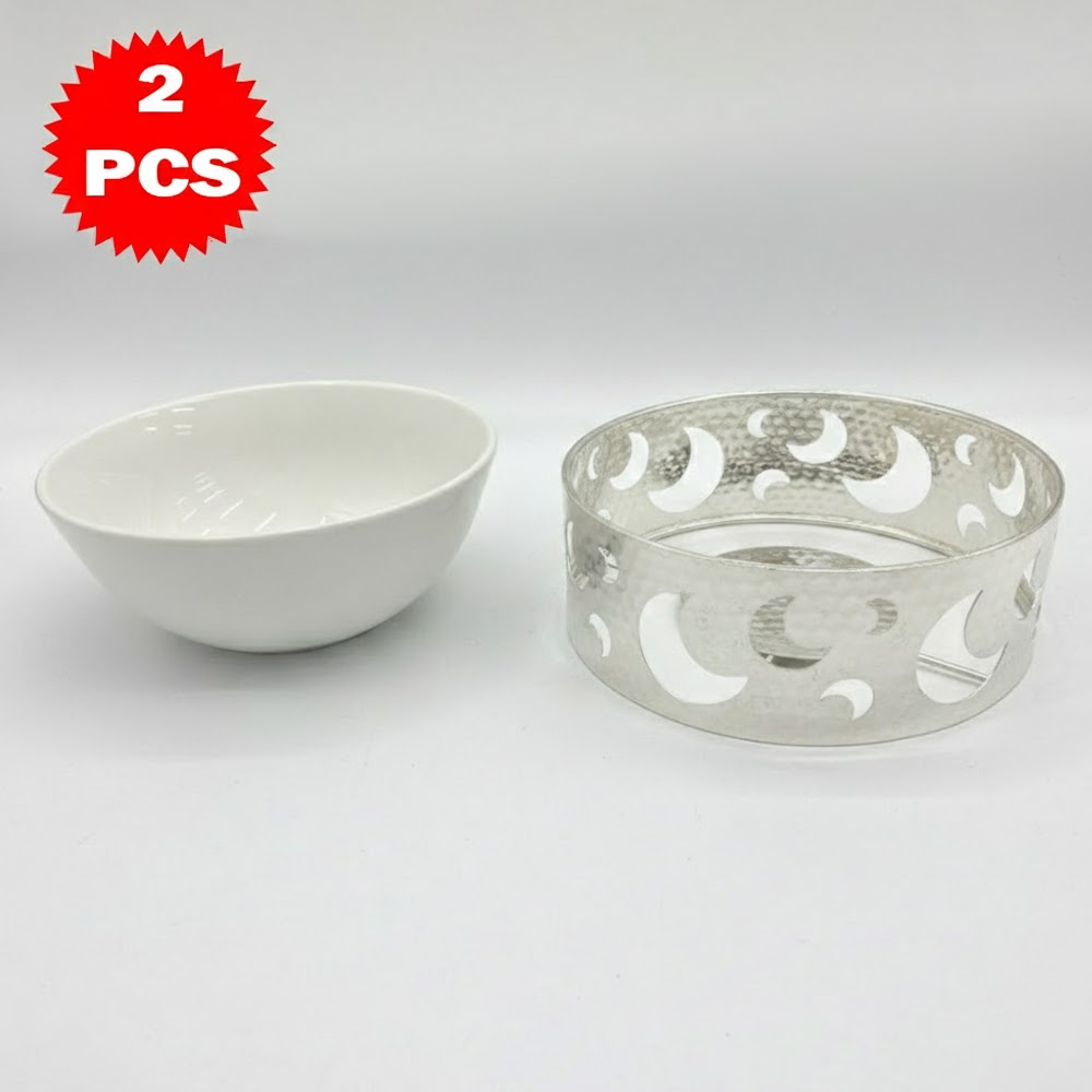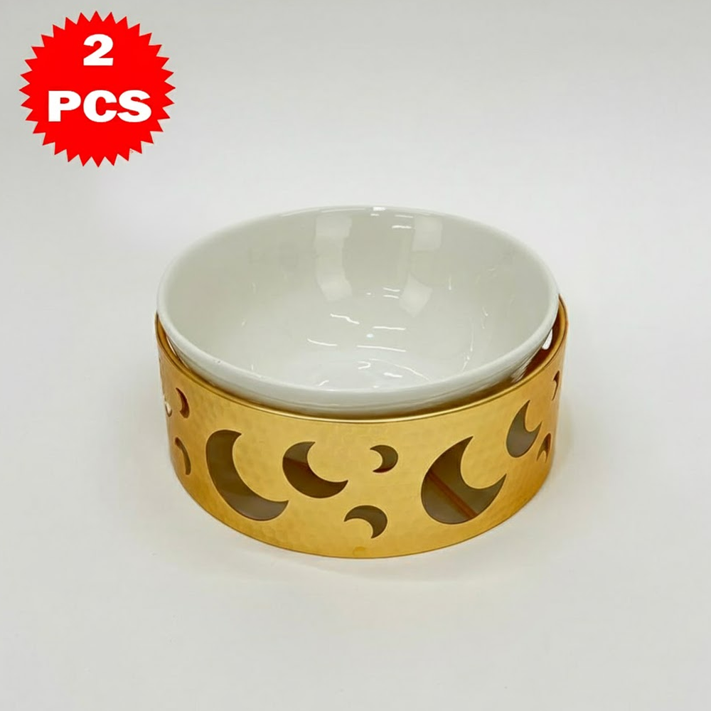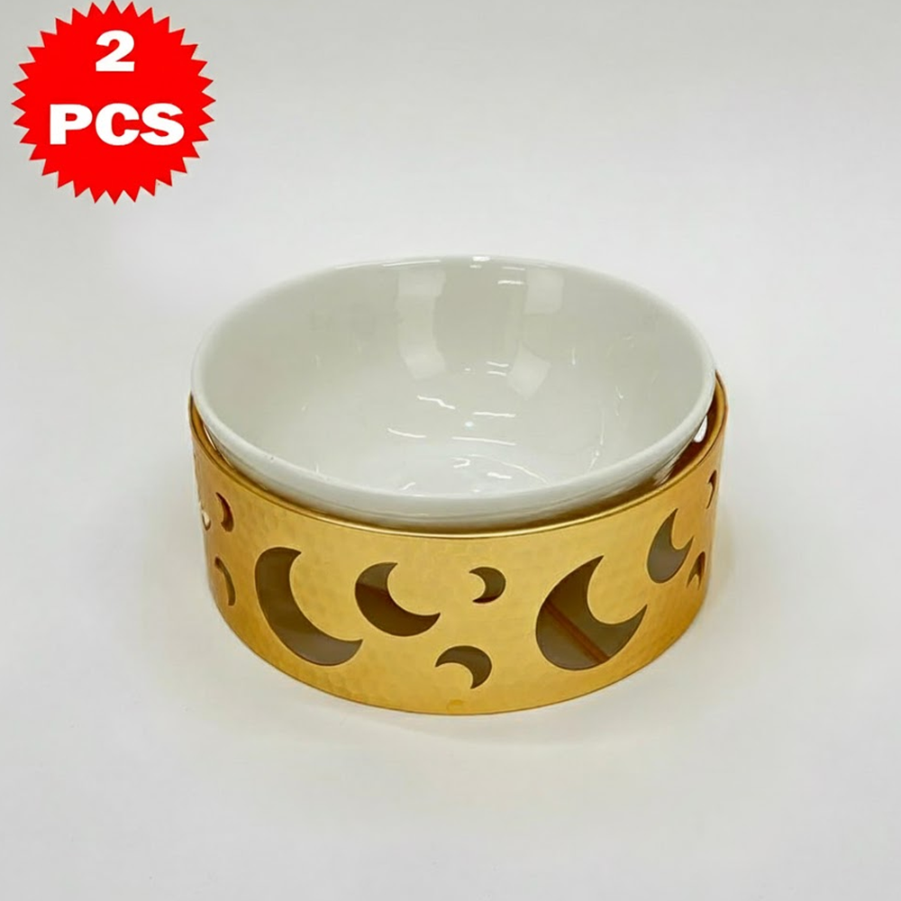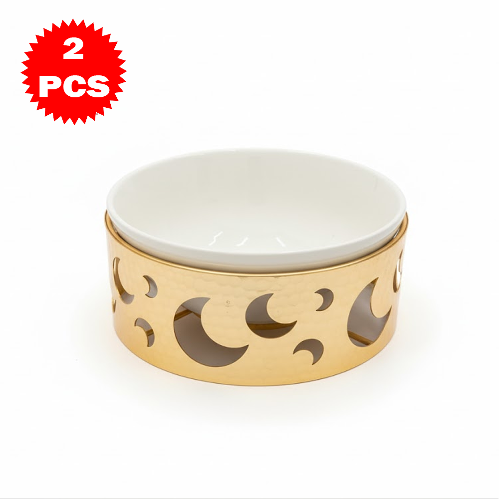 قم تقديم فاخر مكوّن من 2 قطعة – وعاء سيراميك مع قاعدة معدنية بتصميم القمر – لمسة أناقة للمائدة والضيافة