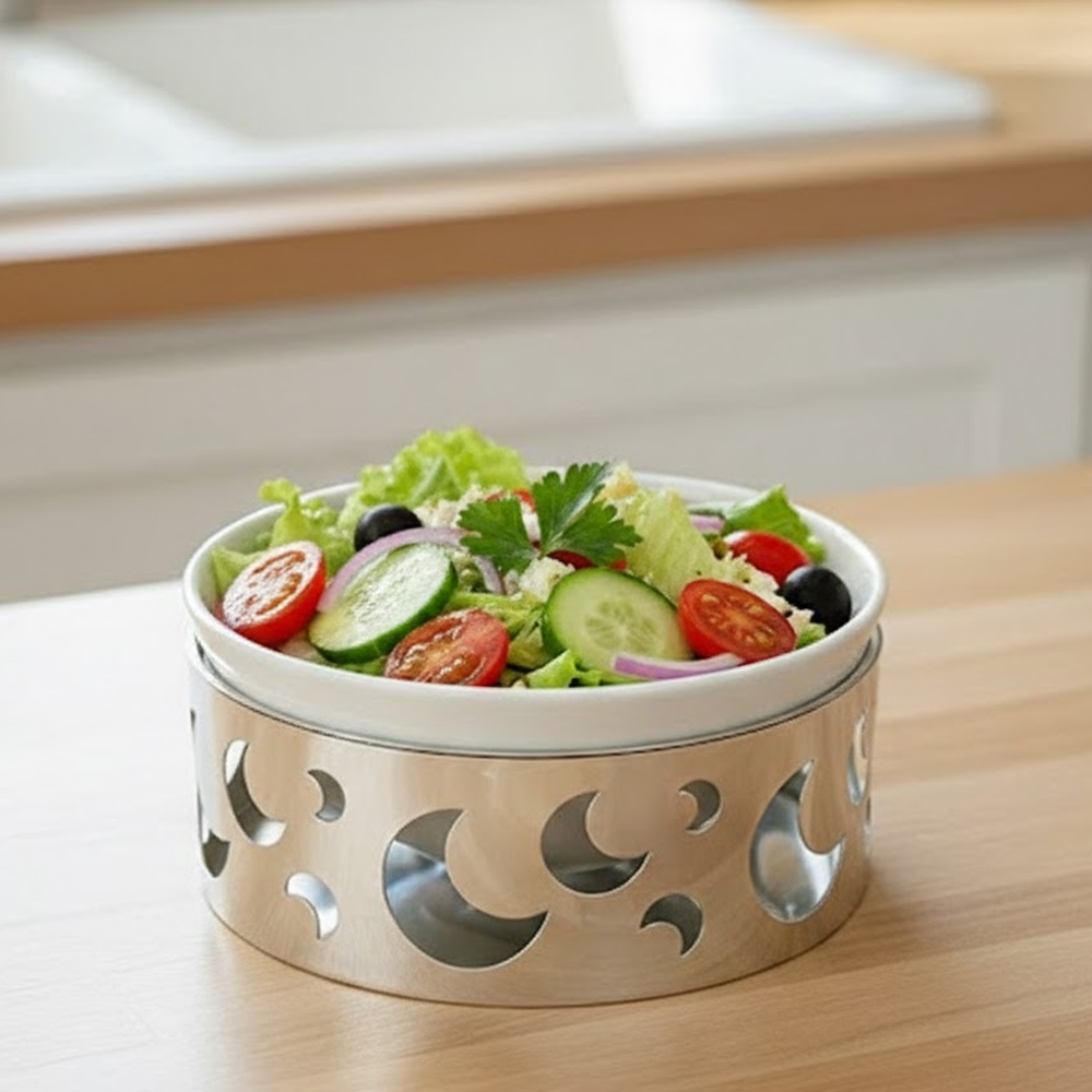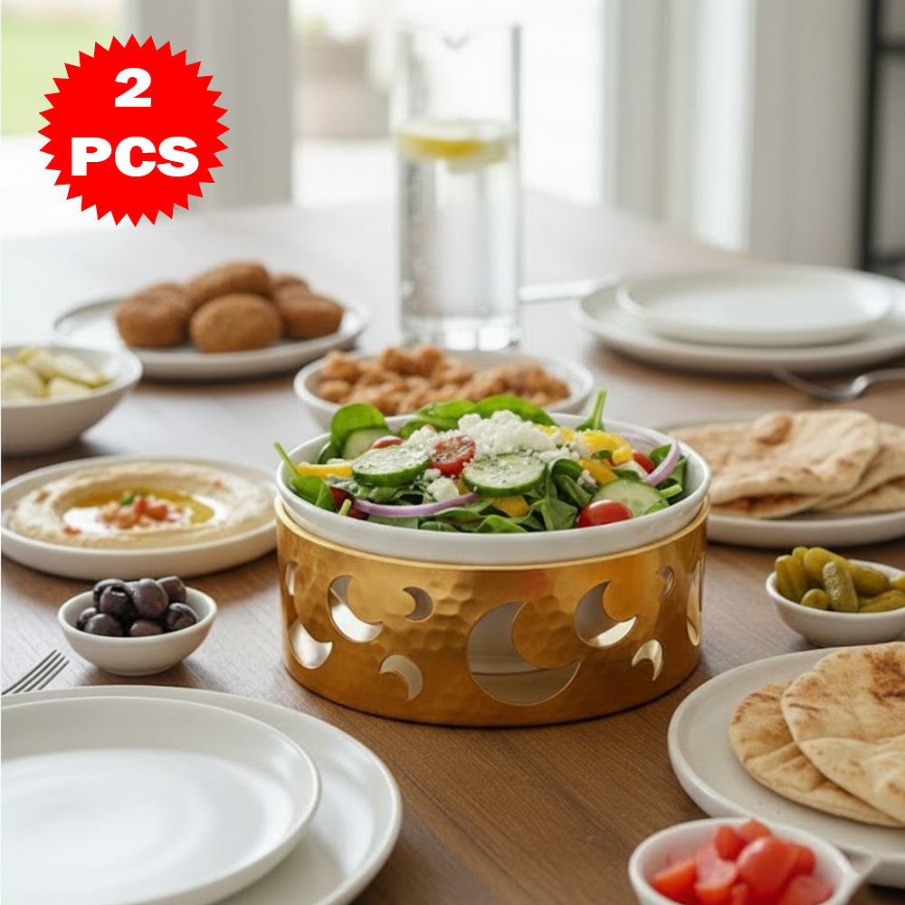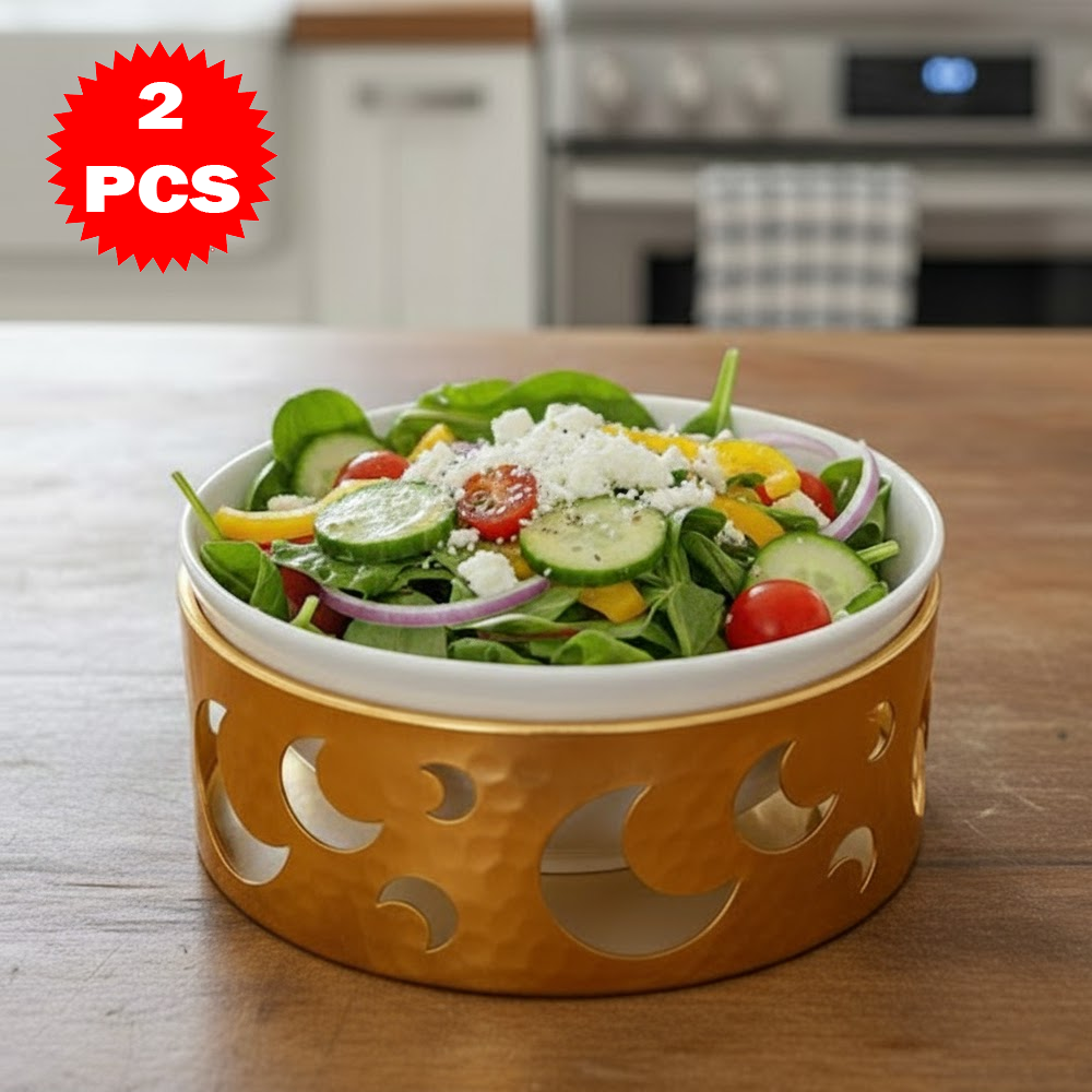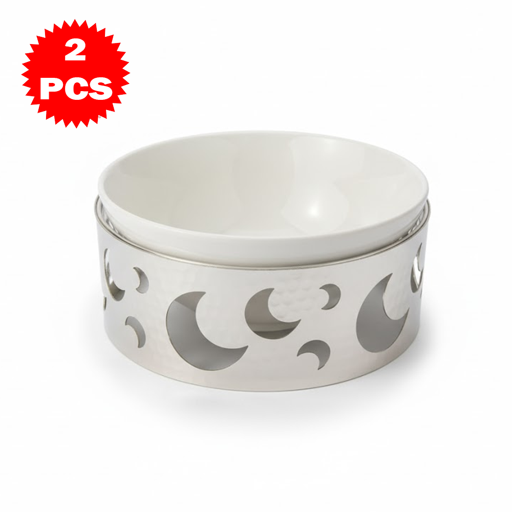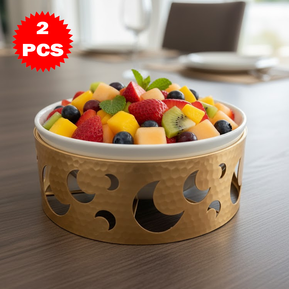 قم تقديم فاخر مكوّن من 2 قطعة – وعاء سيراميك مع قاعدة معدنية بتصميم القمر – لمسة أناقة للمائدة والضيافة