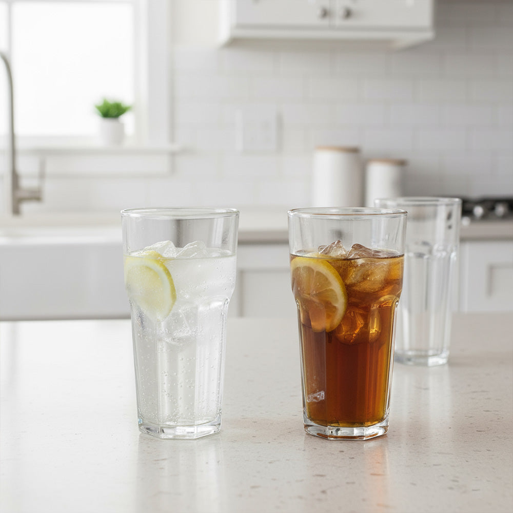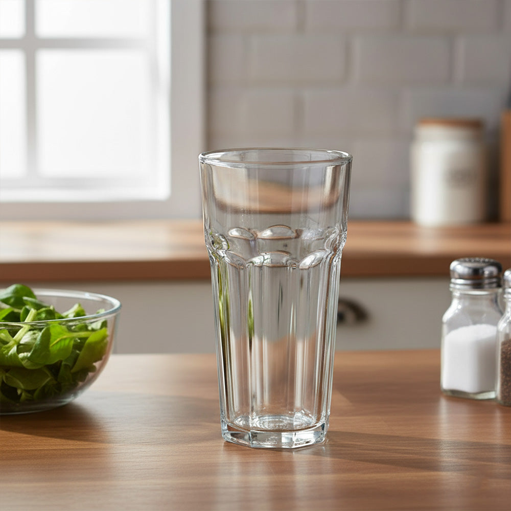 استمتع بمشروباتك المفضلة بأناقة مع هذا الكوب الطويل. بسعة 456 مل، يُعدّ مثاليًا لتقديم القهوة المثلجة، والعصائر، والكوكتيلات. تصميمه الأنيق المُضلّع يوفر قبضة مريحة وجمالًا خالدًا، بينما يُبرز الزجاج الشفاف جمال مشروباتك. يبلغ ارتفاع هذا الكوب 16.5 سم وقطره 8.5 سم، ويجمع بين العملية والسحر الكلاسيكي، مما يجعله مثاليًا للاستخدام المنزلي والمهني.