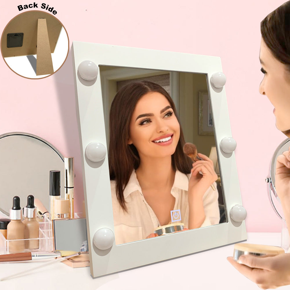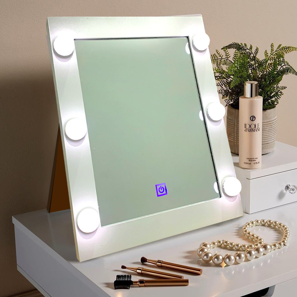 مرآة المكياج المضيئة 6 لمبات ليد مع 3 أوضاع إضاءة وتحكم الاضاءة باللمس