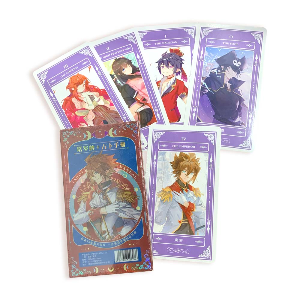 لعبة بطاقات التارو الأنيمي للمبتدئين مع دليل إرشادي، صندوق لامع يحتوي على 78 بطاقة