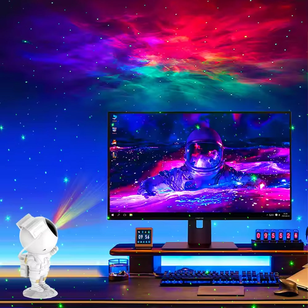 جهاز عرض النجوم على شكل رائد فضاء - مصباح مزود بمؤقت وجهاز تحكم عن بعد - هدية مثالية للأطفال والكبار