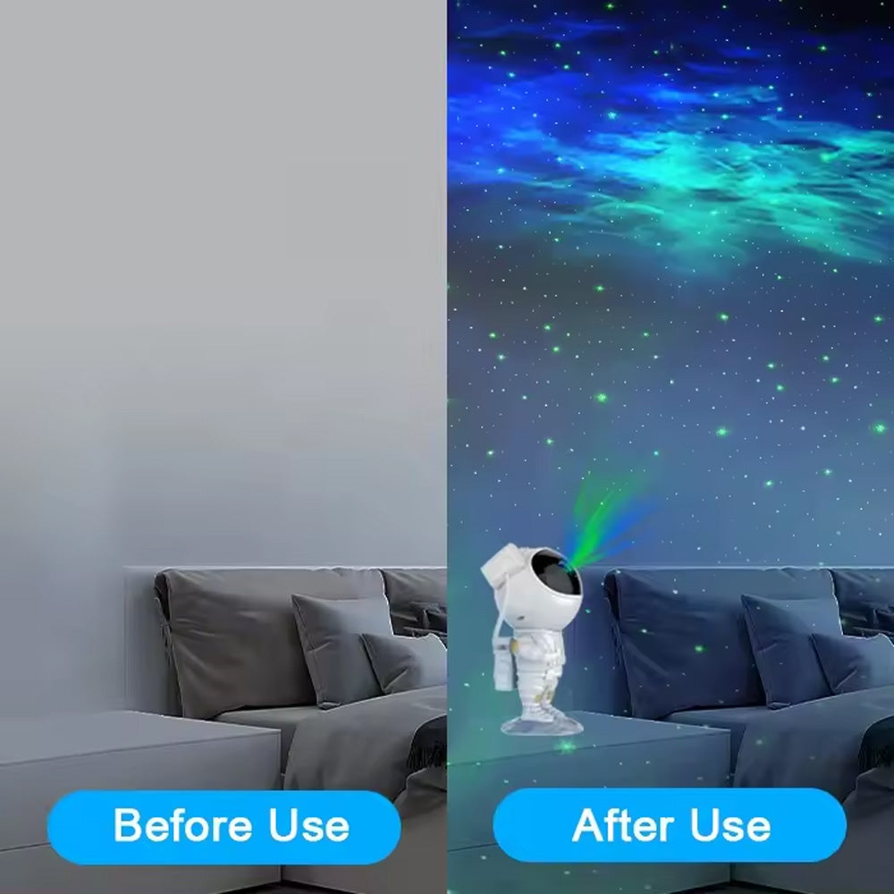 - * مصباح مجرة رائد فضاء فريد ومرن: رأس وجسم مصباح الإسقاط رائد الفضاء متصلان بمغناطيس، وهو قابل للإزالة. يمكنك وضعه عن طريق تدوير الرأس أو فصله عن الجسم وإسقاط النجوم ومصابيح الضباب في أي مكان تريده، مما يخلق بيئة رائعة وحالمة لغرفة طفلك / غرفة النوم / السيارة / الخيمة / غرفة المعيشة / المسرح المنزلي الصغير / غرفة الألعاب / غرفة الدراسة / وما إلى ذلك.