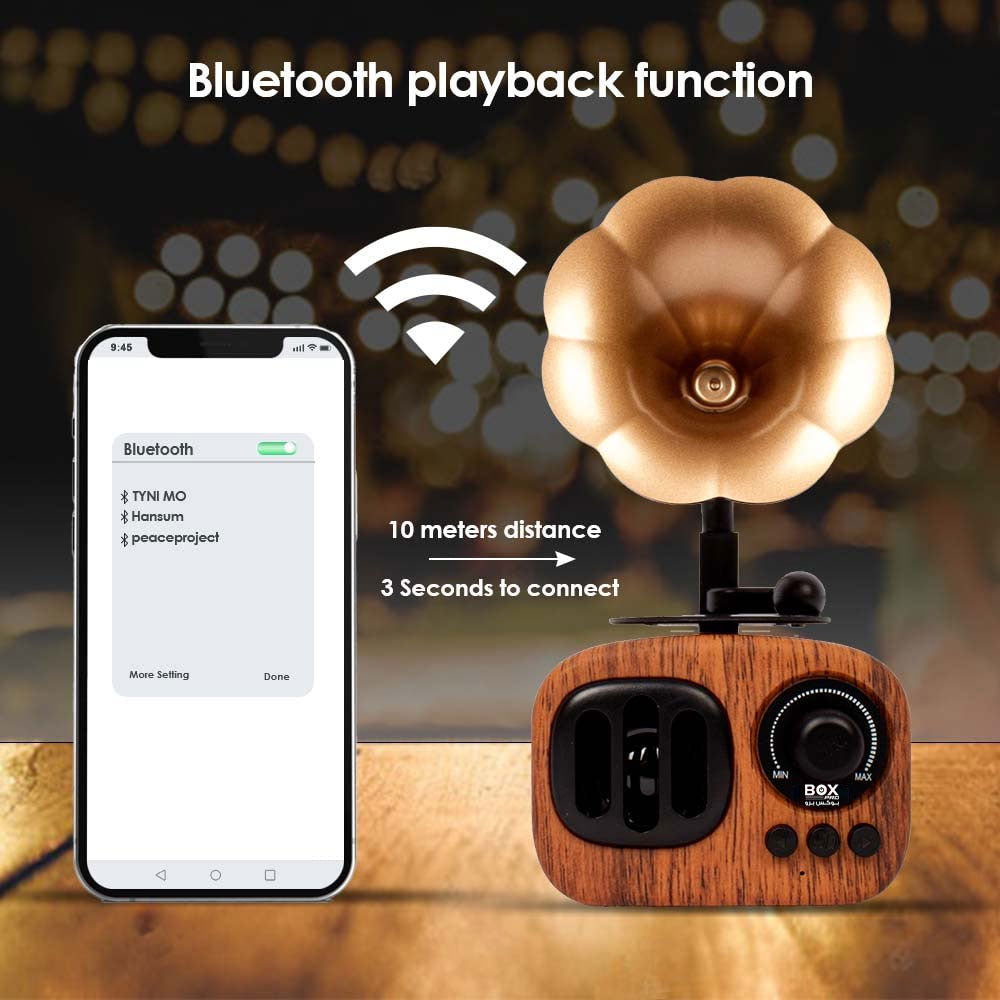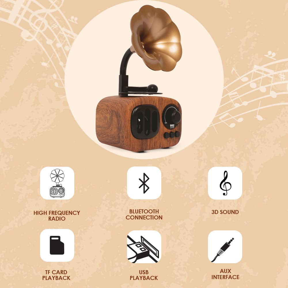 BoxPro B7 كلاسيك ريترو بلوتوث مكبر صوت 5 واط مكبر صوت على طراز جراموفون عتيق للمنزل ، مثالي لحفلات المنزل وأعياد الميلاد والمهرجا