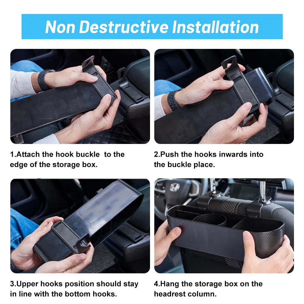 صندوق تخزين خلفي للمقعد التلقائي مع خطافات تعليق لحقيبة مرتبة ومنظم المقعد الخلفي للسيارة مع حامل أكواب وإكسسوارات السيارة