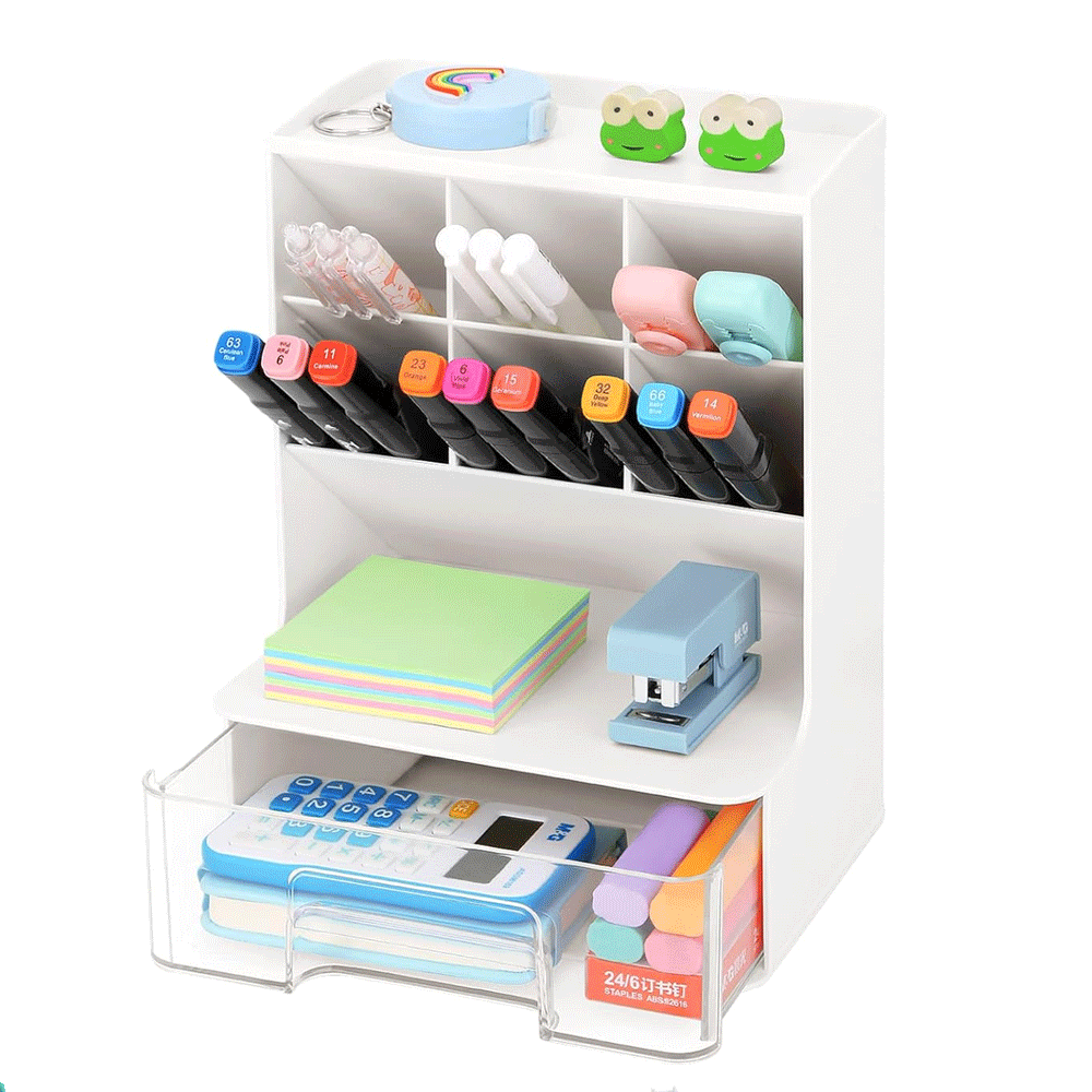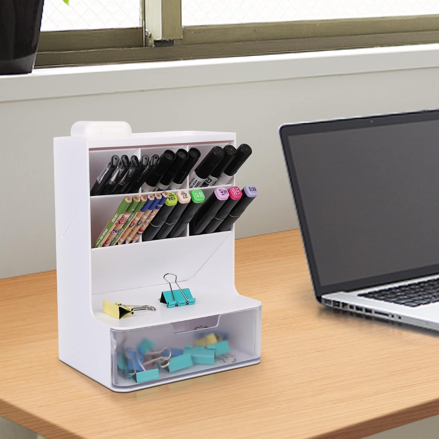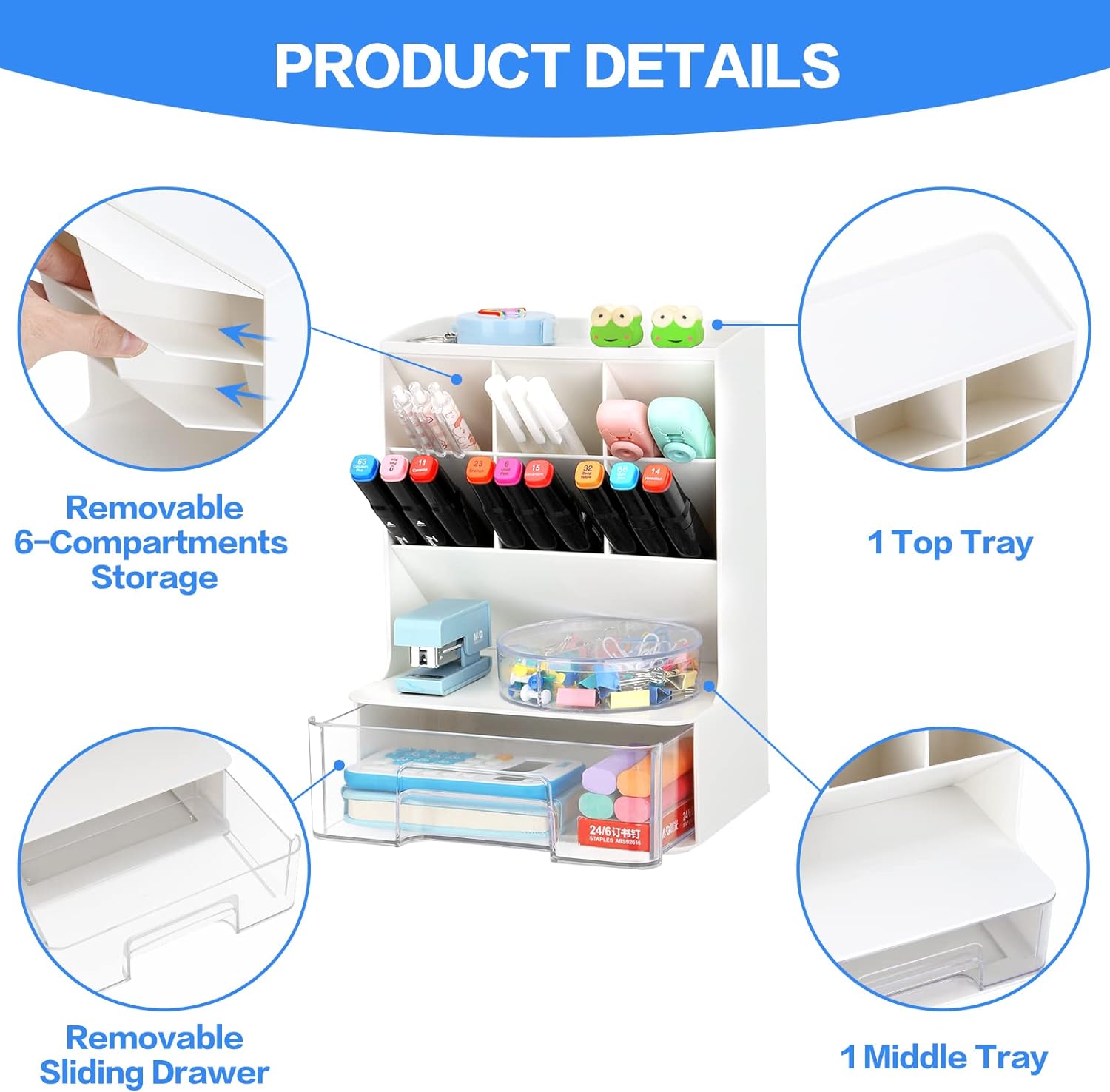 - منظم المكتب: مساحة كافية لجميع ملحقات المكتب المكتبية، والأوراق، ومشابك الورق، والملاحظات اللاصقة، وأقلام الرصاص، وأقلام الرصاص، وأقلام التحديد، ومستلزمات المكتب، وحامل أقلام الرصاص، وحامل أقلام المكتب، منظم مكتب ممتاز للوازم المكتبية