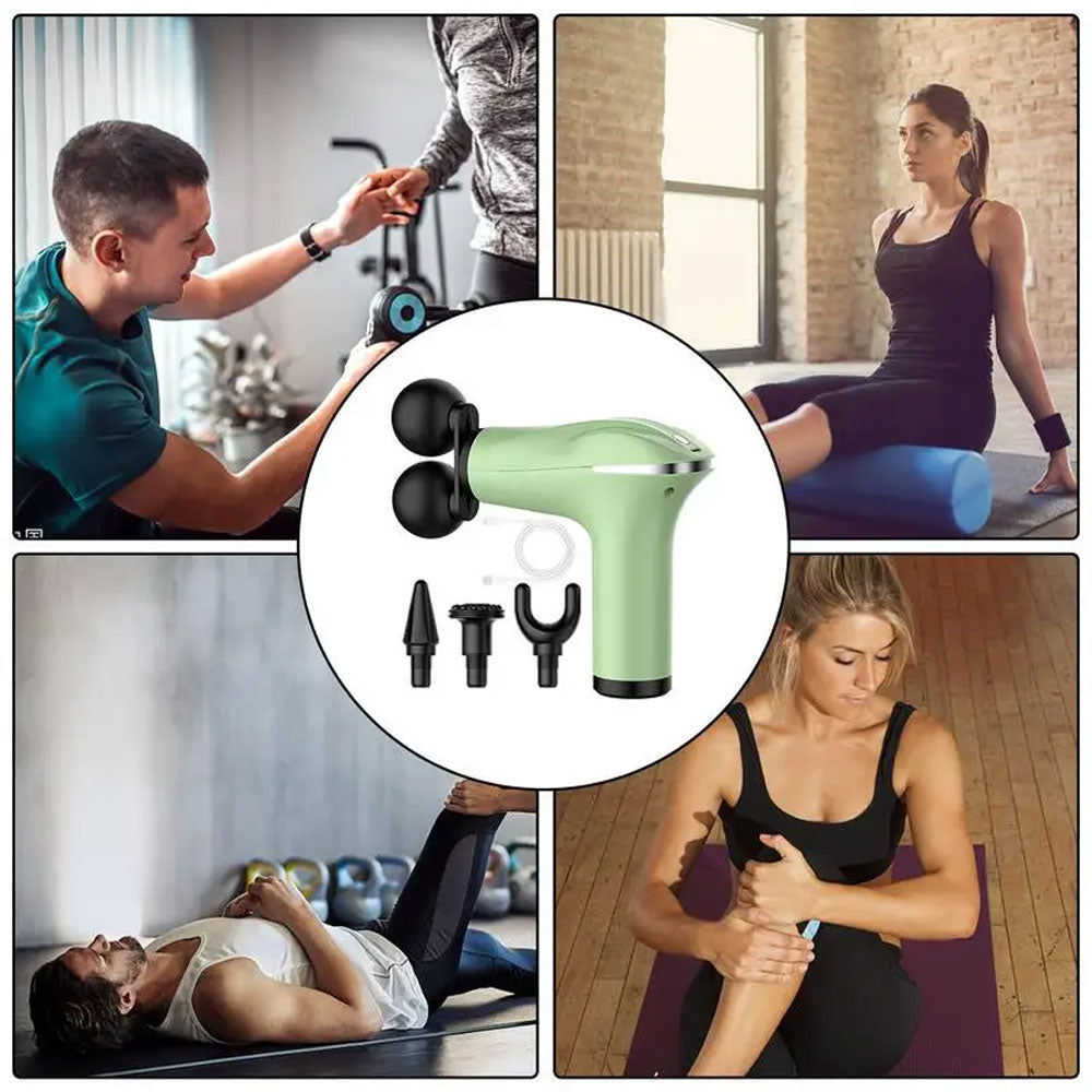 مدلك العضلات المحمول برأس مزدوج اهتزاز كهربائي , معالجة الأنسجة العميقة , جهاز تدليك العضلات 6 سرعات اهتزاز هادئ