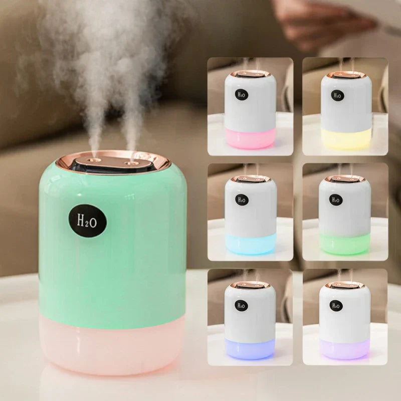 700ML مرطب مزدوج,منقي هواء للمنزل سعة كبيرة مزدوجة رذاذ USB المرطب لتنقية الهواء مع مصباح LED للمنزل مرطب الهواء بالموجات فوق الصوتية كول ميست أروما - LA-0645 - أبيض