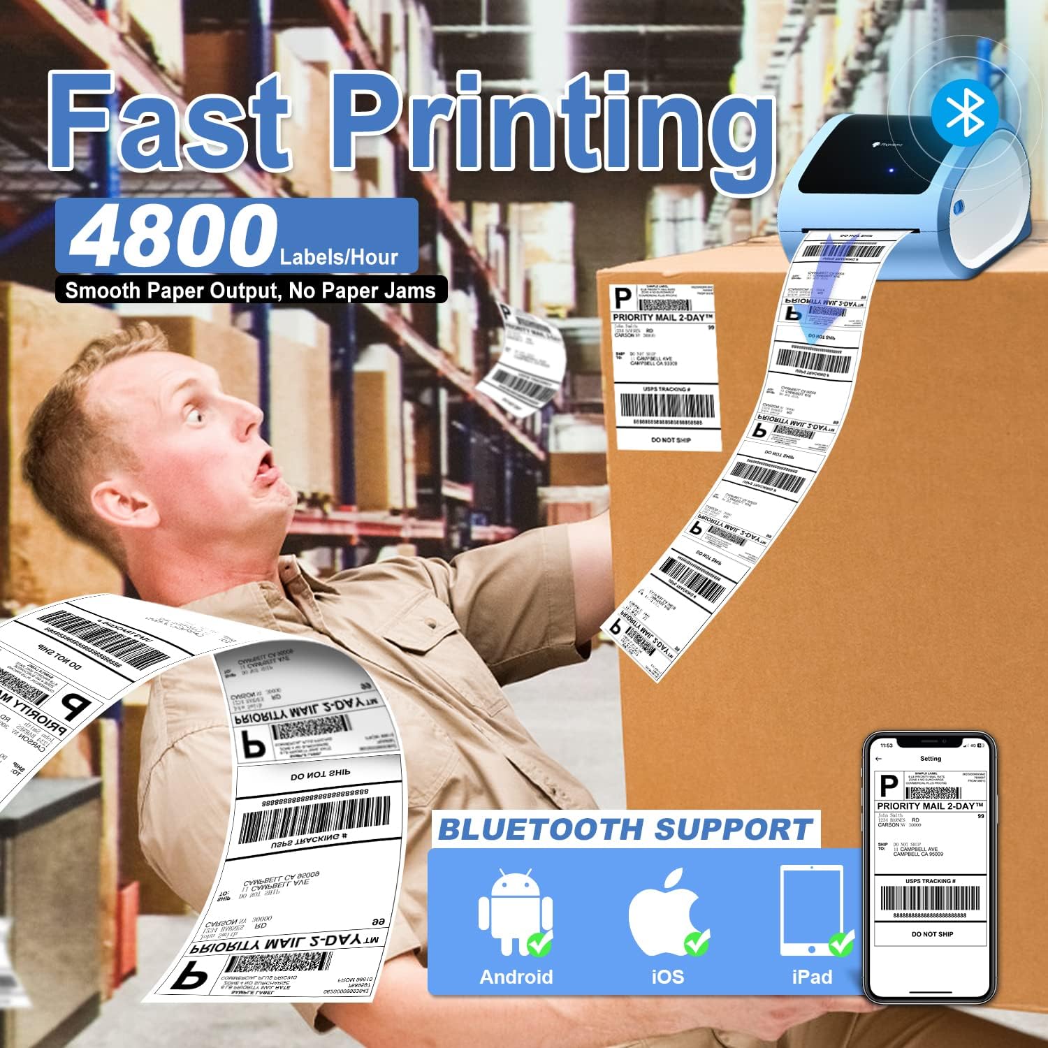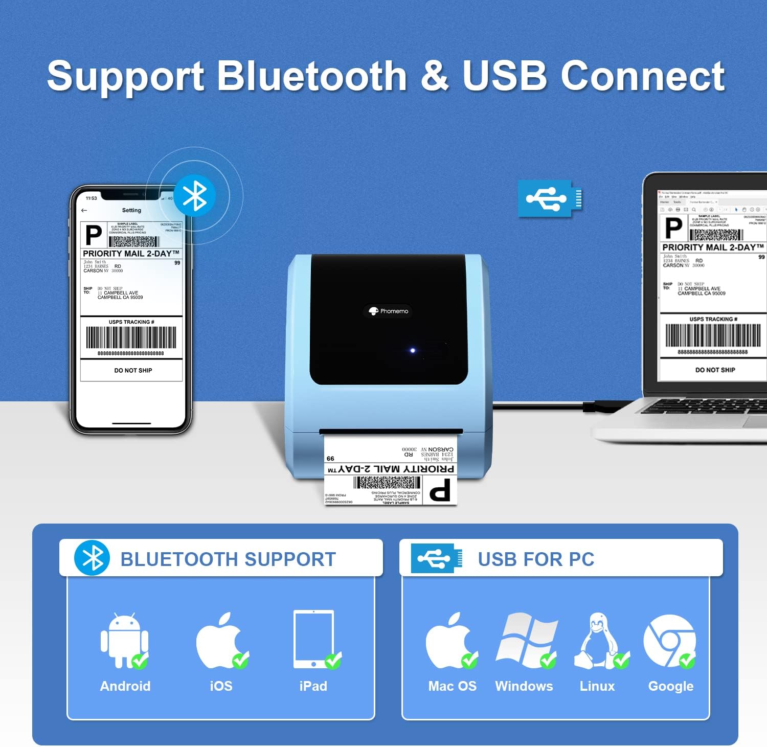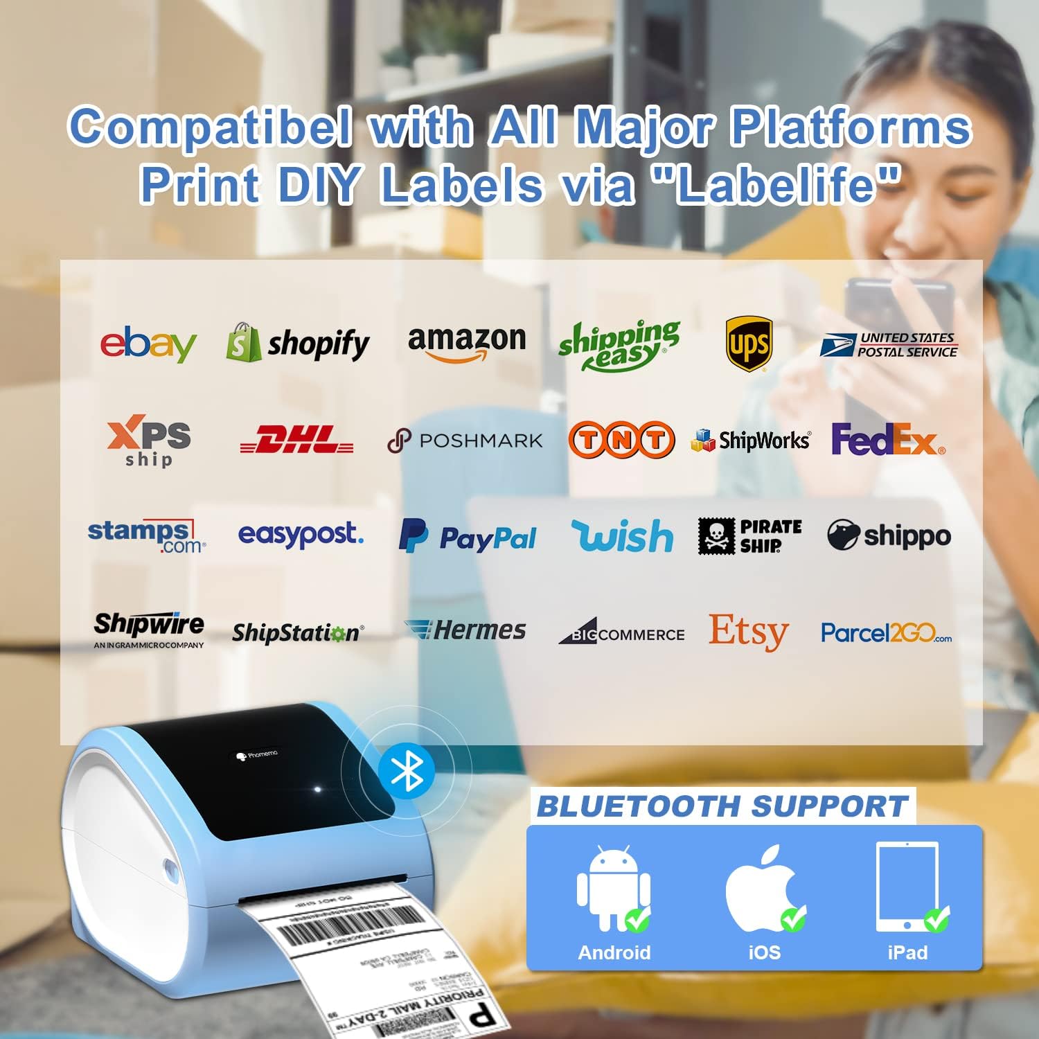 Phomemo Bluetooth Shipping Printer- D520-BT Thermal Label Printer 4x6 Printer for Small Business & Packages, Barcode, Address Labels, Postage, Compatible with Shopify, FedEx, Ebay, Etsy, Blue