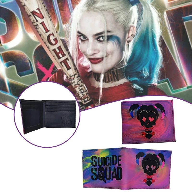 محفظة جلدية عليها شعار هارلي كوين للنقود وبطاقات الائتمان
