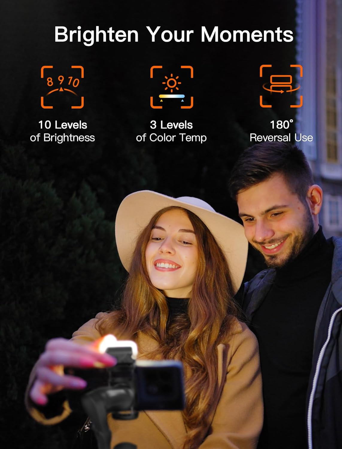 Magnetic Fill Light Featuring10-Level AdjustableBrightness