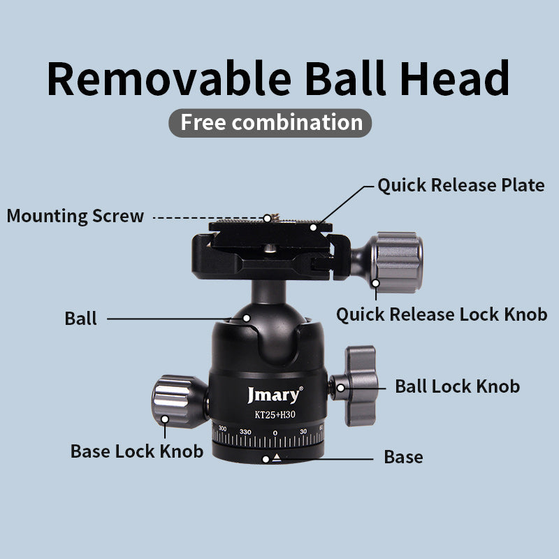 حامل ثلاثي صغير Jmary KT25+H30 للكاميرا أو الهاتف مع رأس كروي 360 درجة