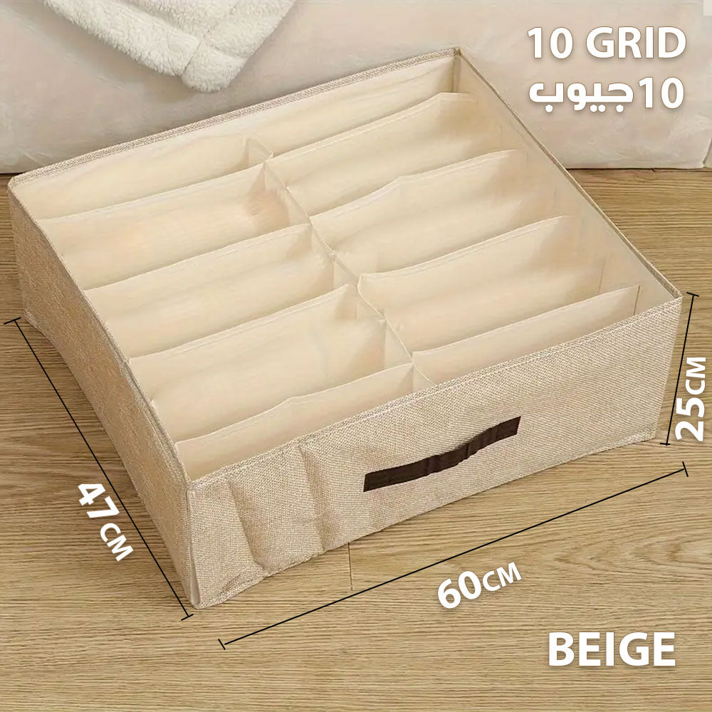 صندوق ذو سعة كبيرة بتصميم مقسم مقاوم للغبار، يحافظ على الترتيب، 10 شبكات كبيرة جدًا، صف مزدوج، منظم ملابس، مستلزمات غرفة النوم.