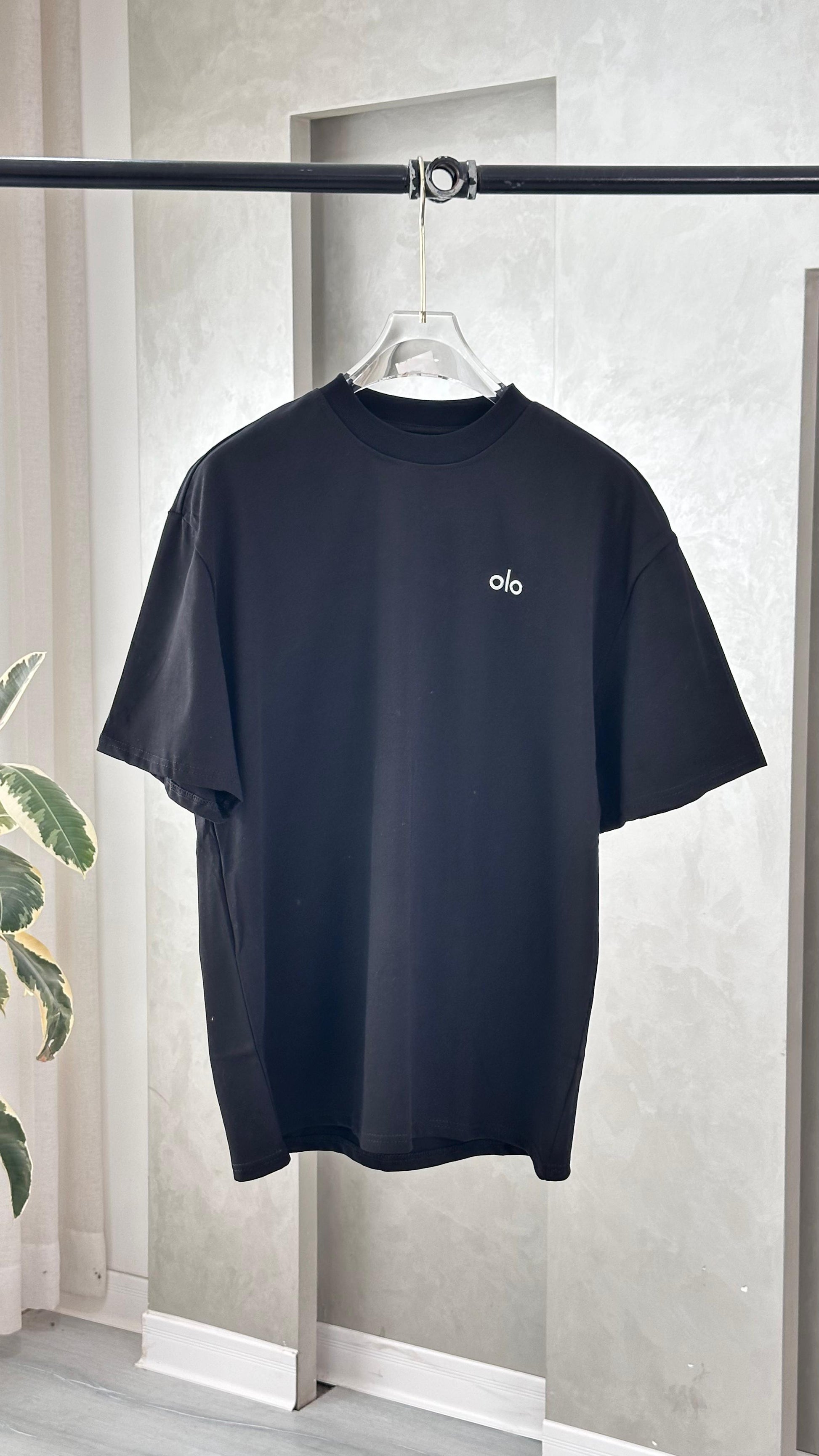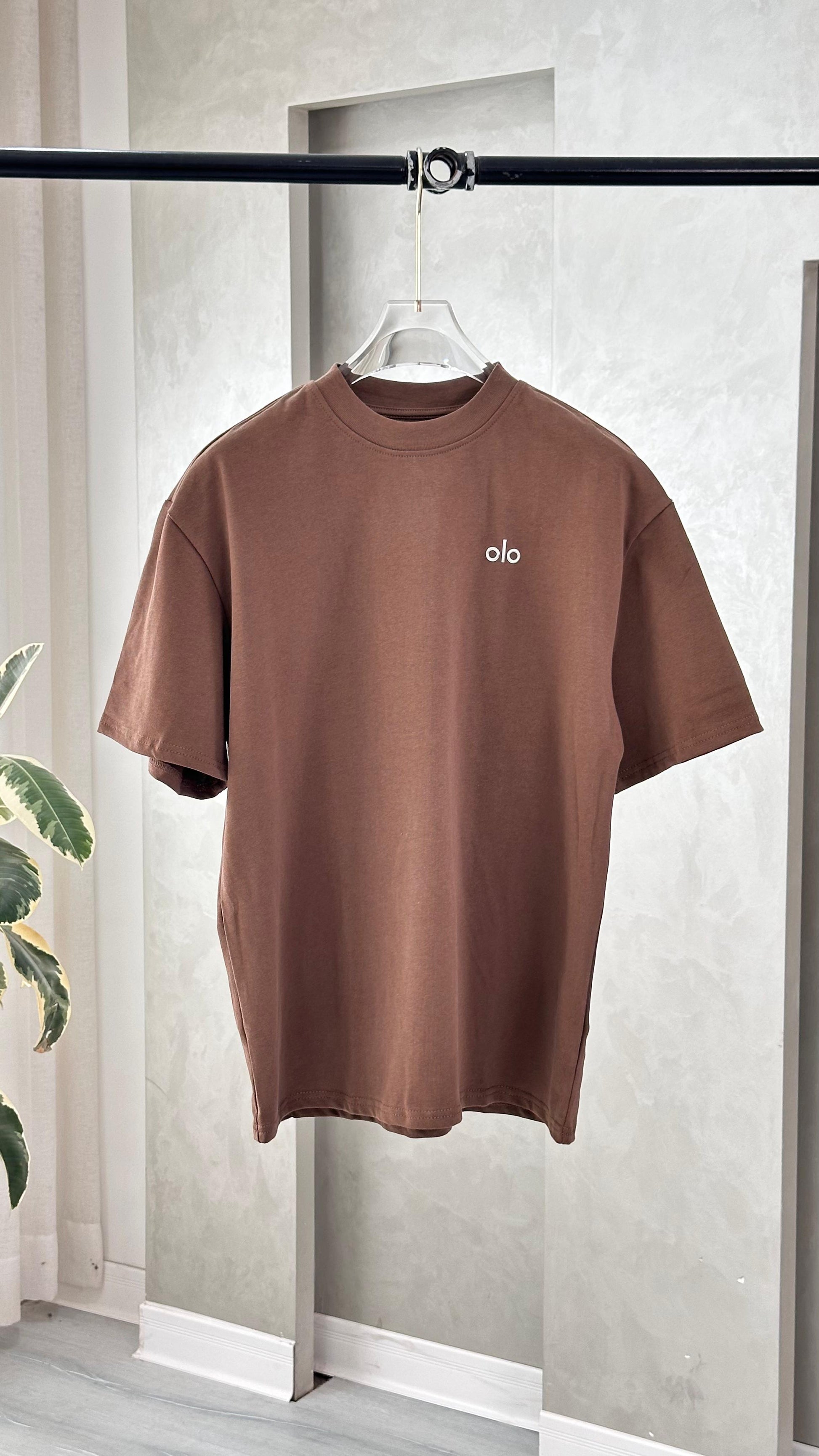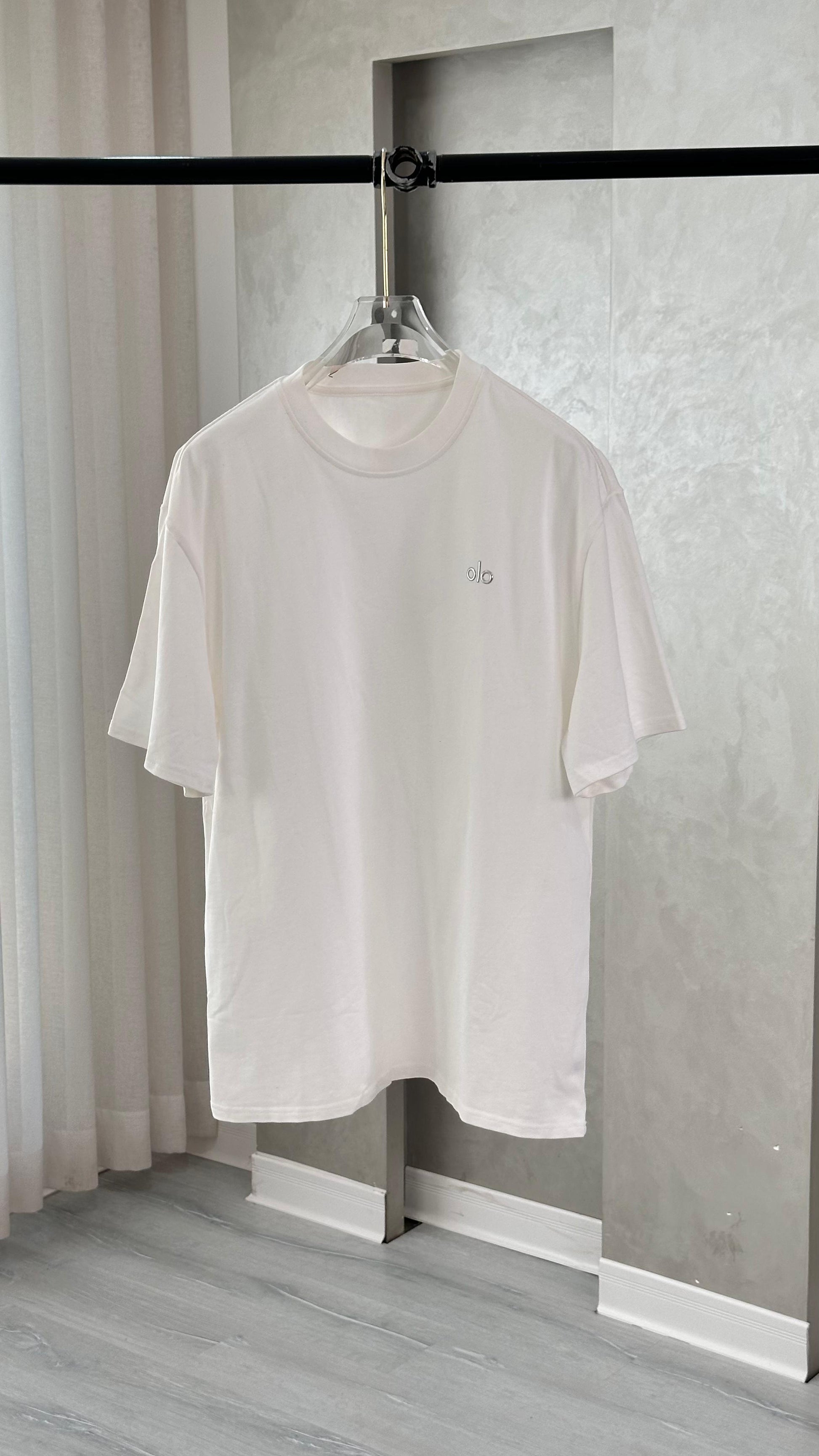 القميص قصير الأكمام، بتصميم بسيط ومستقيم، ويتميز بياقة دائرية مغلقة. يحتوي على طبعة صغيرة أو شعار عند الجهة اليسرى من الصدر، تضيف لمسة خفيفة من التميز دون أن تخل بالبساطة العامة. القماش يبدو ناعماً ومريحاً، مما يجعله مناسباً للاستخدام اليومي أو التنسيقات غير الرسمية. القصة متوازنة، لا ضيقة ولا فضفاضة، وتمنح مظهراً عملياً وسهل التنسيق.