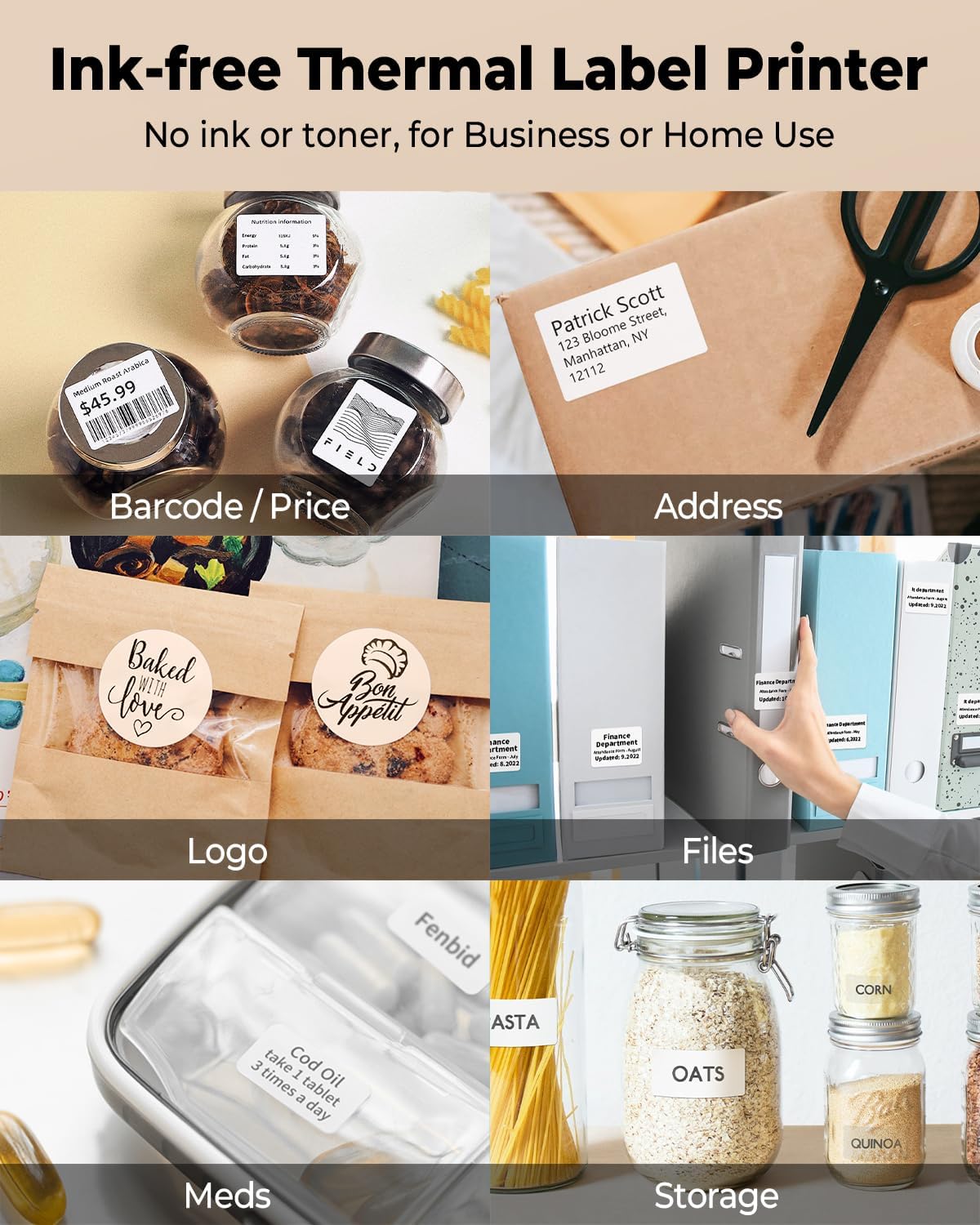 ▣ طباعة بدون حبر وسلسة وسريعة - حامل ورق قابل للتعديل وتحديد تلقائي للملصقات ، إنه مصمم لمنع انحشار الورق والانحرافات ، مما يجعل الطباعة أكثر سرعة. إنها طابعة حرارية ، لا طباعة بالحبر ، لا حاجة لاستخدام الشريط ، تقليل الطلب على المواد الاستهلاكية وتوفير المال. اطبع بالأبيض والأسود فقط.