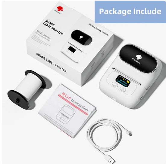 Phomemo M110 طابعة تسمية لاسلكية حرارية ملصقا طابعة صغيرة صانع ملصقات الباركود بلوتوث - أبيض