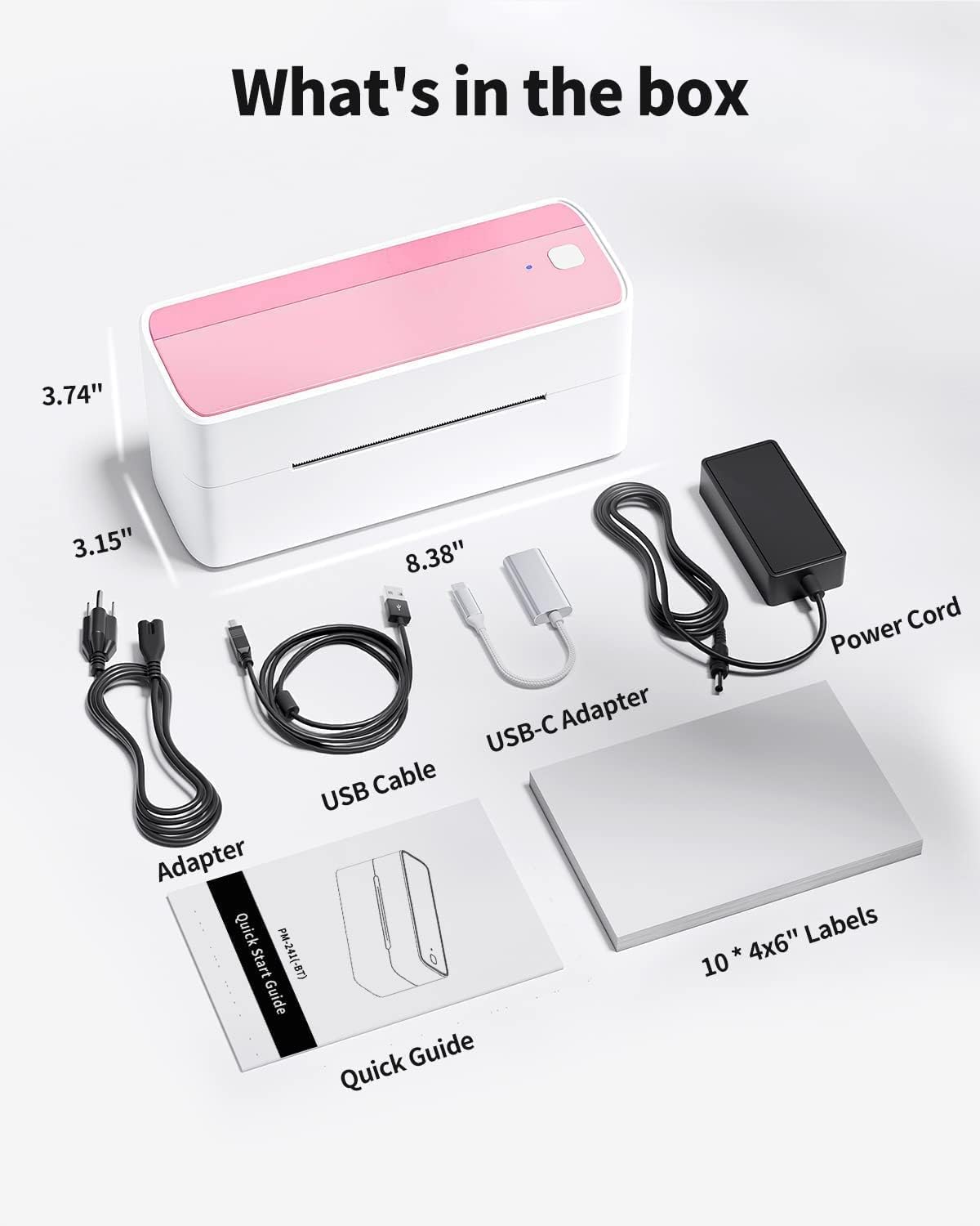 Label Printer Wireless Thermal Label Printer For Small Business Compatible With IOS, Android & Computer Pink+White Color