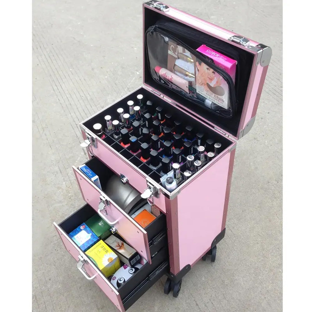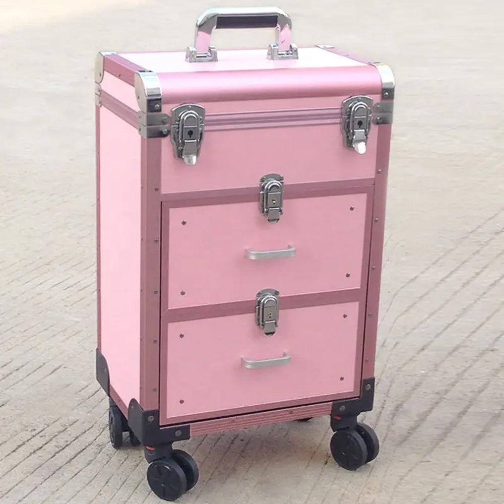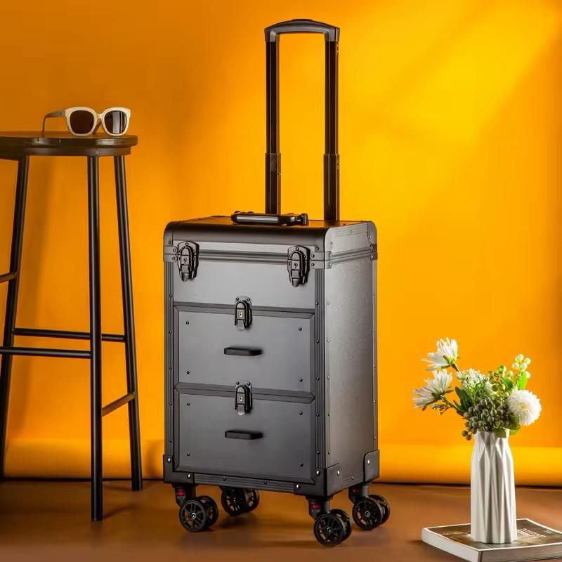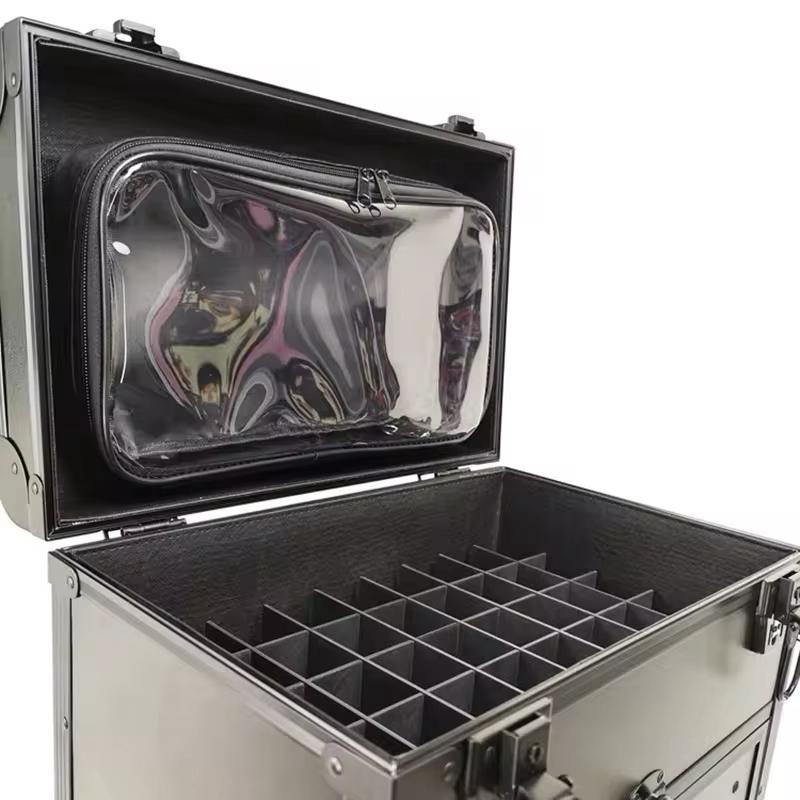 - Aluminium alloy edge design to prevent the cosmetic box from collision on the road, better protection of the box body; three-stage locking lever, strong toughness, not easy to break