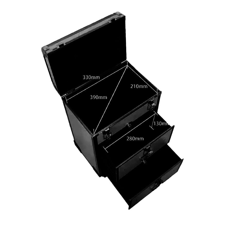حقيبة أدوات مكياج احترافية / حقيبة مستحضرات تجميل / عربة / حقيبة سفر / صندوق به درجين ناعمين (اللون: أسود)