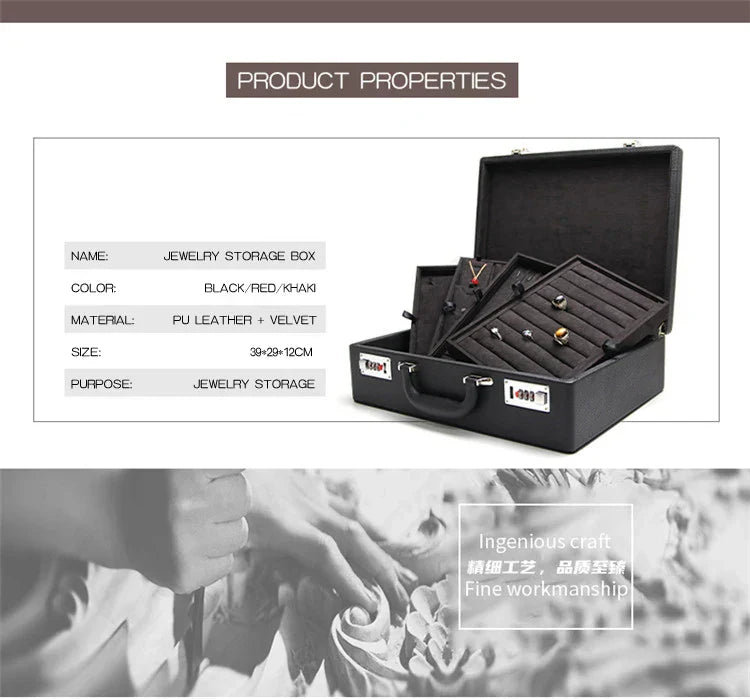 صندوق مجوهرات كلمة المرور المحمول من جلد البولي يوريثان